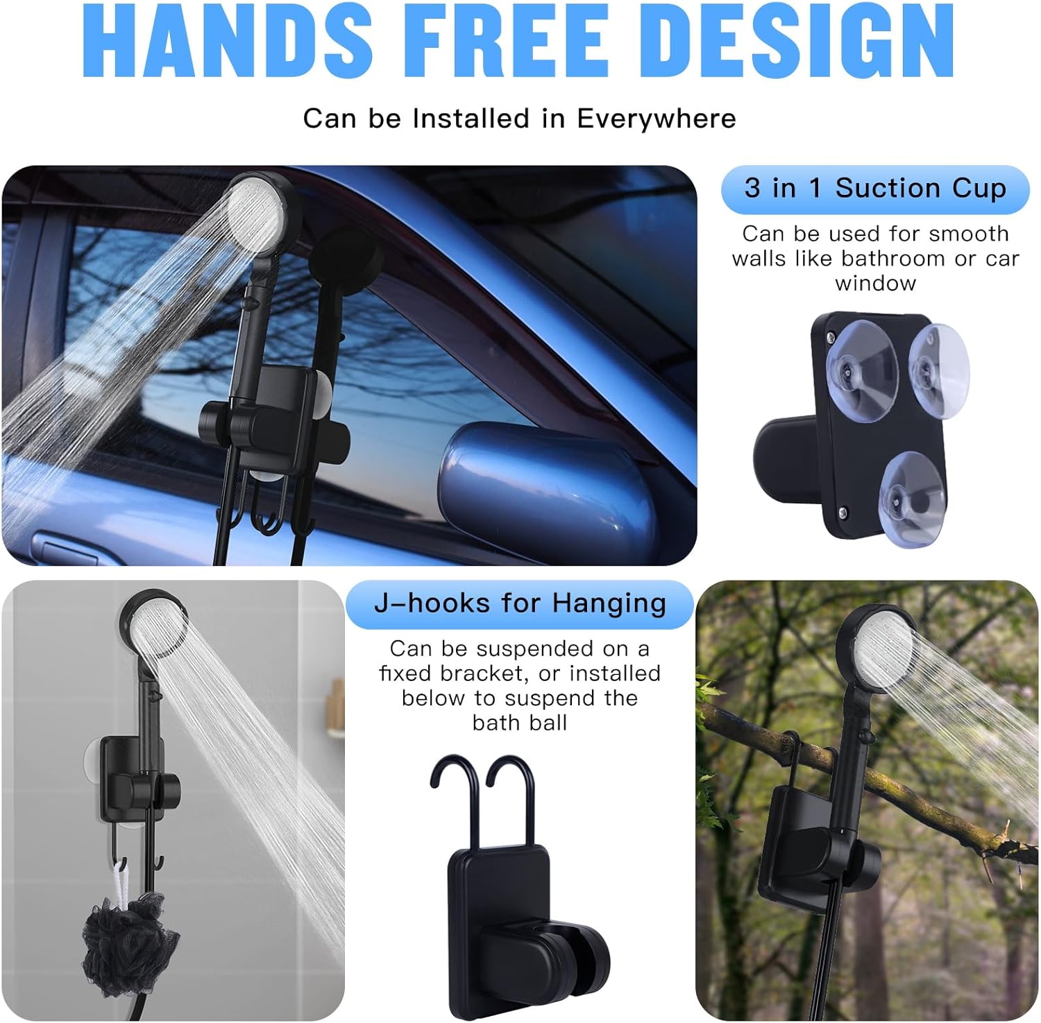 【Space-Smart Adventure Kit】Includes 2m anti-kink hose, multi-angle hanging hook (holds 15lbs), and compact black organizer bag. Sets up in 60 seconds – the ultimate portable camping shower solution for RVers, backpackers, and beachgoers.Bathing your pet will also be incredibly convenient. All components nest neatly in the carry pouch.