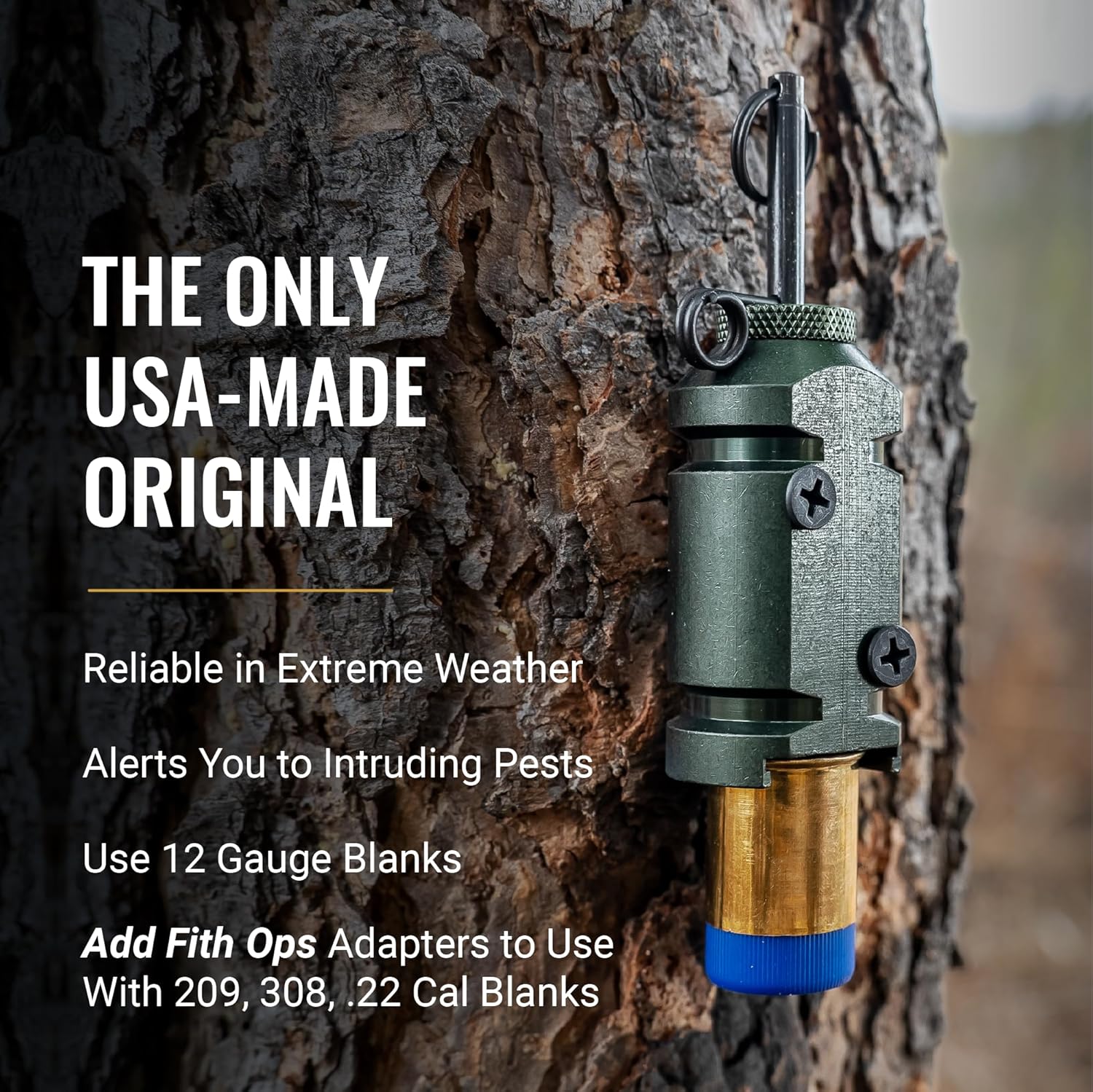 USA INVENTED & MADE: Fith Ops is the original inventor of the perimeter trip alarm. We came up with the look, feel and design. Any other devices you see that have our exact look are counterfeit products. We are the original company operating in Idaho.
