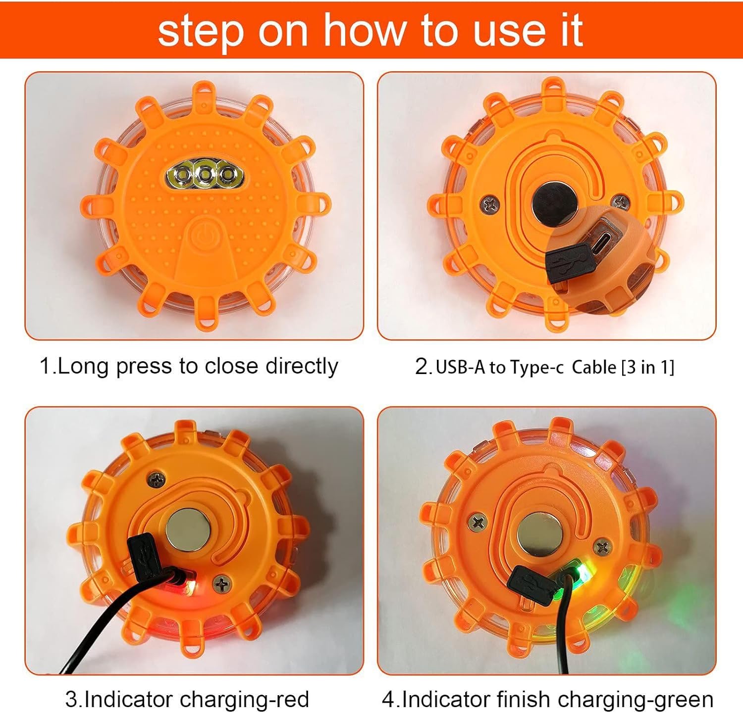 🥾 GP903B LED Road Flares Car Beacon Emergency Kit USB-C Rechargeable Magnetic Base Hooks Carrying Pouch 9 Modes for Car Construction Rescue (3 Pack) — Review, Key Features & Current Price