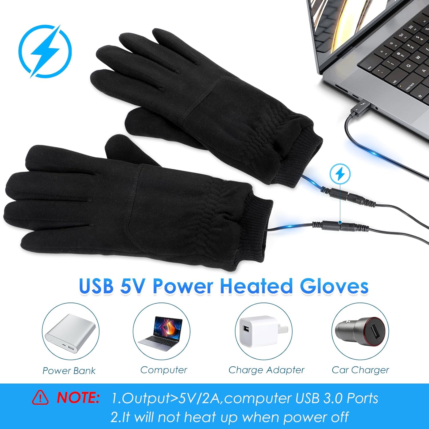 【USB Heated Gloves 5V Power】There is a heating pads inside the heated work gloves, and the heating temperature of the heating pads is about 37-45℃/98.6-113℉. Once plugged in, the gloves will start to heat up quickly and always keep hands warm,allows you to away from cold winter even when you study or work. Simply plug it into USB port of power bank or other 5V power sources when you are outdoor,enjoy the warm winter. NOTE: When power off, the gloves without heating. Not included power bank.