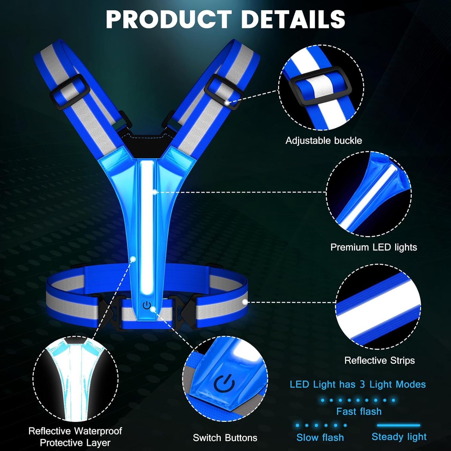 Improved safety with LED reflective running vest: This night running gear provides a brighter running vest than the previous generation. In addition to the reflective strip, we also advanced the running vest by designing incredible LED lights that can be seen from 1000 feet away.