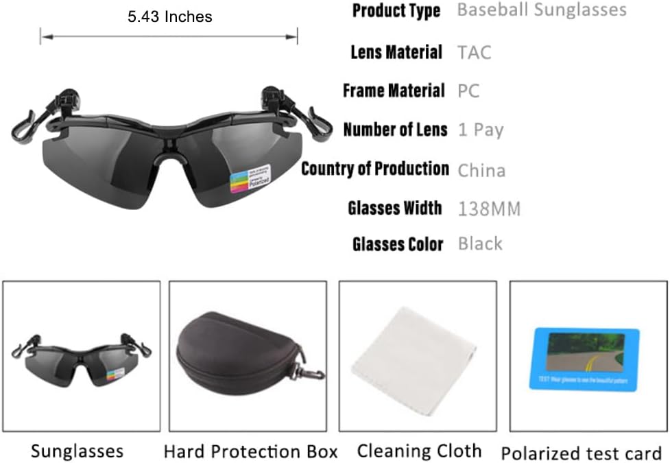 1. Baseball cap sunglasses are ideal for any sunny day. Suitable for outdoor sports, fishing, golf, cycling, hiking, running, etc.