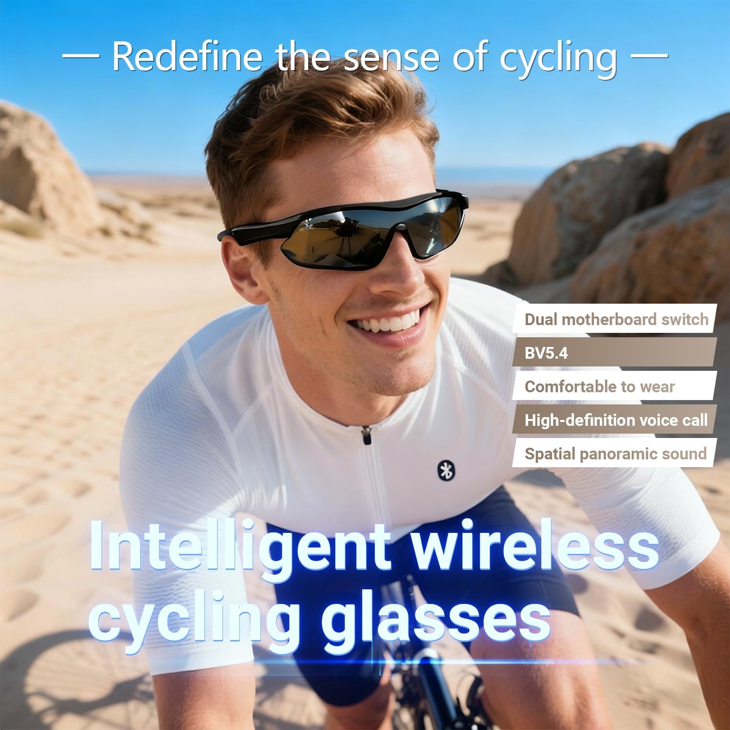 【Comprehensive Protection】These Bluetooth cycling sunglasses feature UV400 polarized lenses that effectively block UV rays and glare, protecting your eye health. The IPX5 waterproof construction is impervious to sweat and rain, ensuring stable use in challenging outdoor environments.