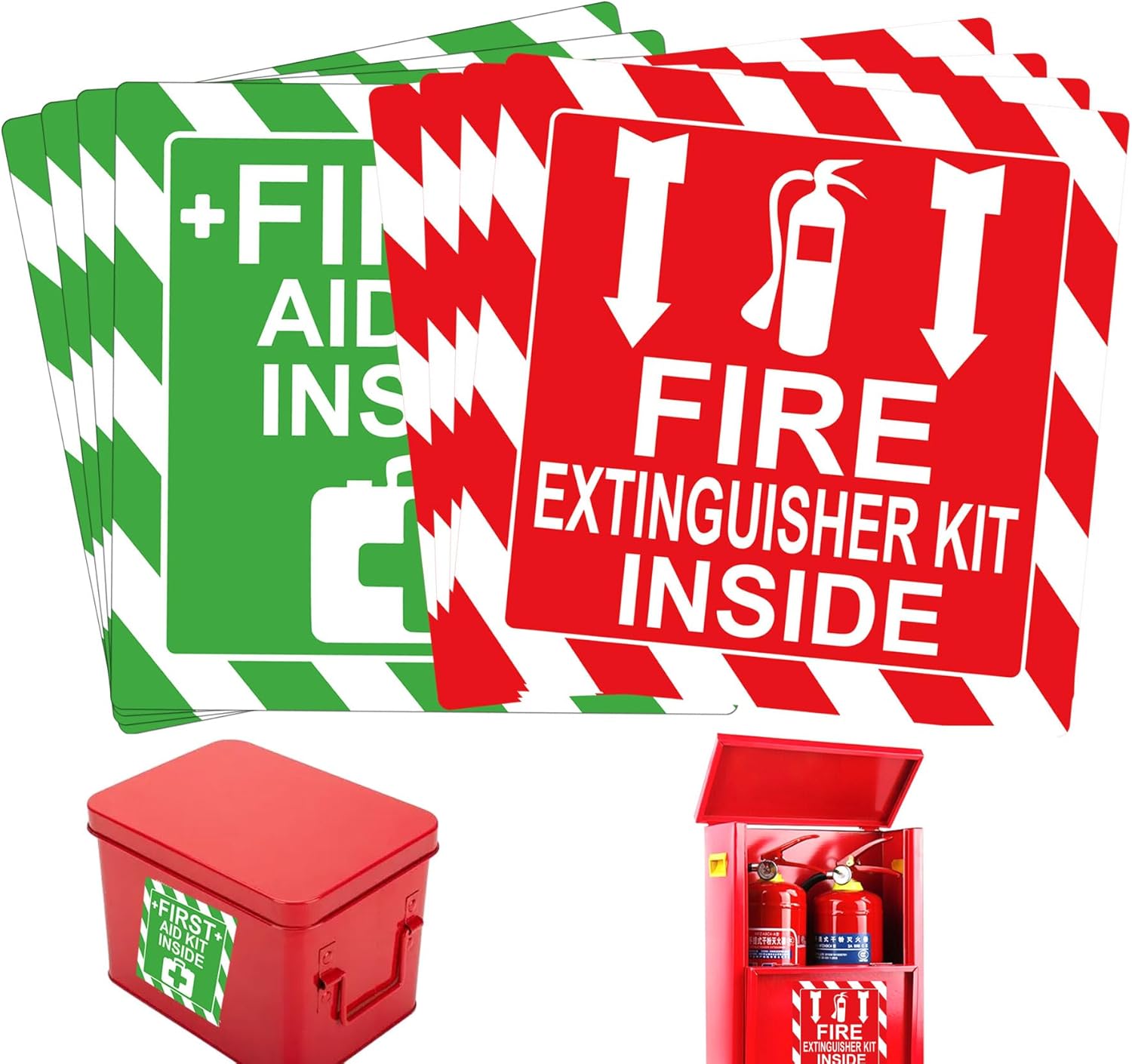 4 pcs First Aid Kit Inside Stickers and 4 pcs Fire Extinguisher Inside stickers.