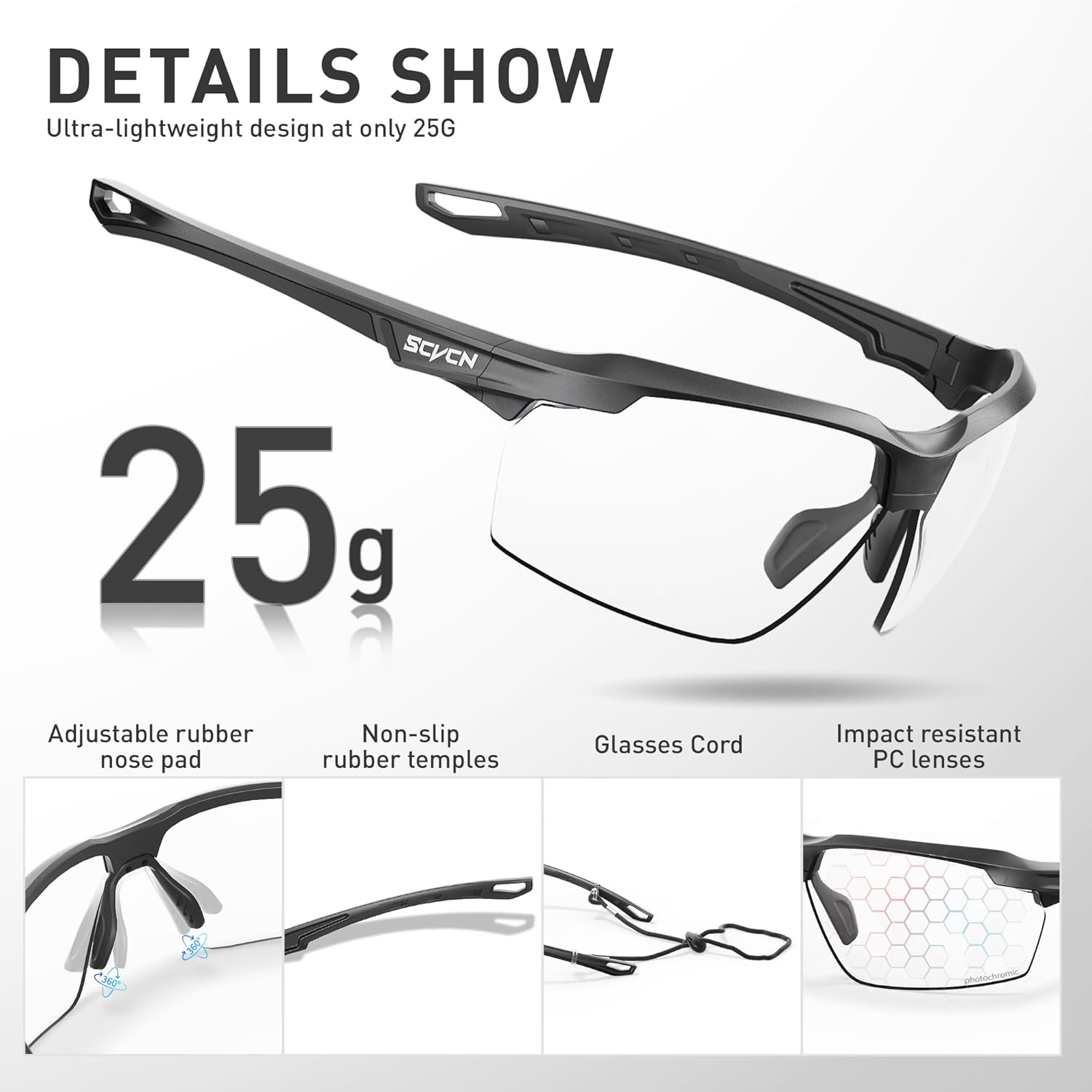 【UV400 Protective Lenses】The PC lenses of these photochromic sunglasses have a UV400 protective coating for UV resistance, which can effectively block 99.99% of harmful UVA and UVB rays, eliminating glare and protecting your eyes from intense sunlight.