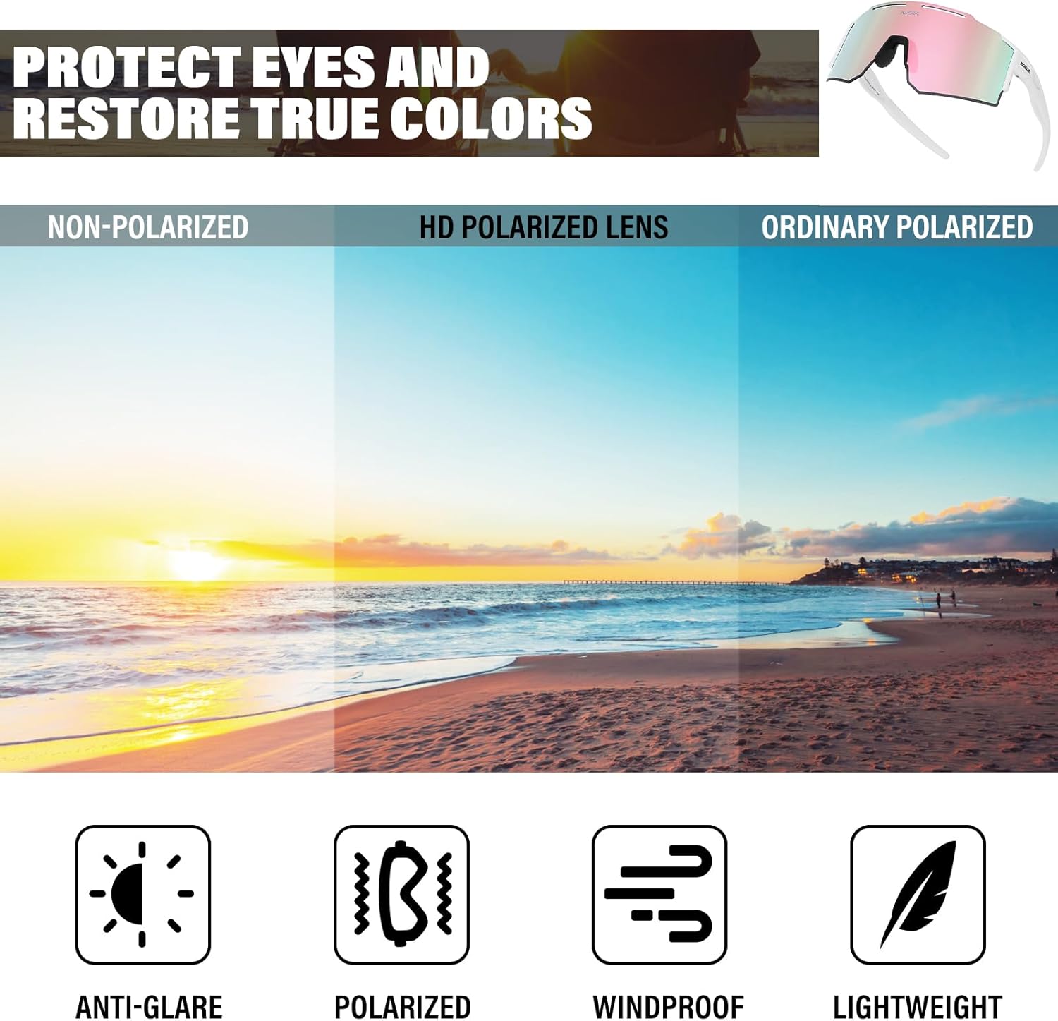 【Compression & Scratch-Resistant TR90 Sunglasses Frame】Some intense outdoor activities mean that your outdoor sports sunglasses must be durable enough to handle the various challenges you may face in.The TR90 frame of this sunglasses is made of polymer memory material, which is flexible and scratch resistant, and weighs only about 26 grams, so you won’t strain your ears even prolonged use.