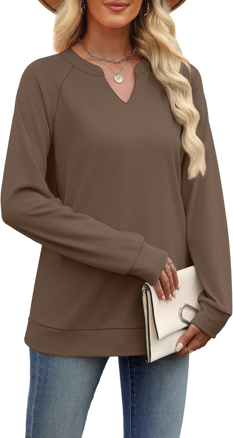 SAMPEEL Womens Fall Fashion Outfits 2025 V Neck Sweatshirt Lightweight Loose Fit