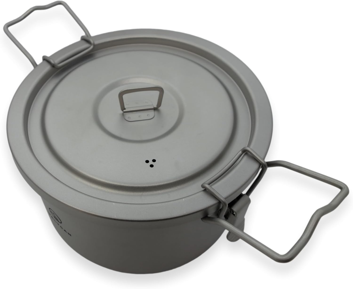 The Valtcan 2000ml Rice Cooker combines this material advantage with a purpose-built locking lid, built-in measurement guides, and foldable bail handles. It’s a precision rice cooker, a full camp cookware set, and an airtight food container – all in a single 605-gram titanium pot that fits in a mesh bag.