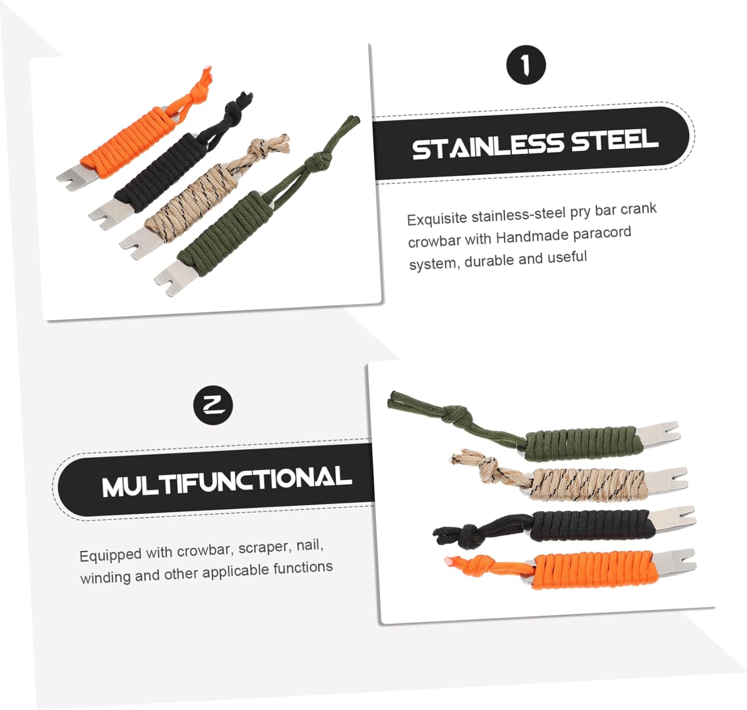 Metal crowbars–the pry bar can be used as a ruler, opener, and can also be used to wrap the rope,stainless steel crowbars