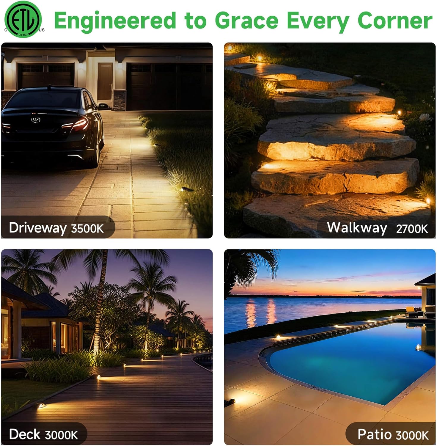 ๐ ๐๐๐ฃ๐ฎ๐ฌ๐ญ๐๐๐ฅ๐ ๐๐จ๐ฅ๐จ๐ซ ๐๐๐ฆ๐ฉ: With 2700K (Warm White), 3000K (Soft White), 3500K (Neutral White), 4000K (Cool White), and 5000K (Daylight White), the low voltage outdoor well light adapts to any scene. Effortlessly match existing outdoor lighting for a cohesive, balanced ambiance.
