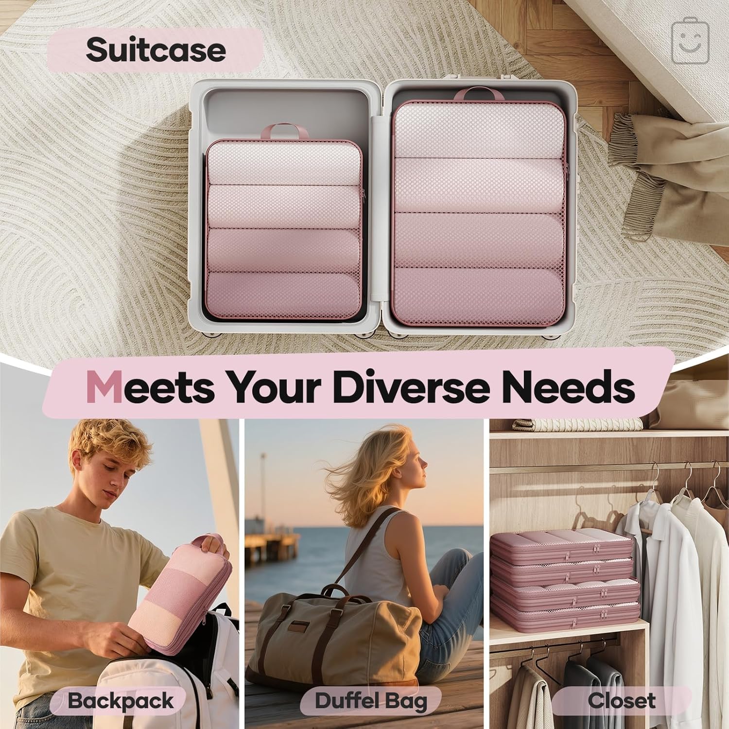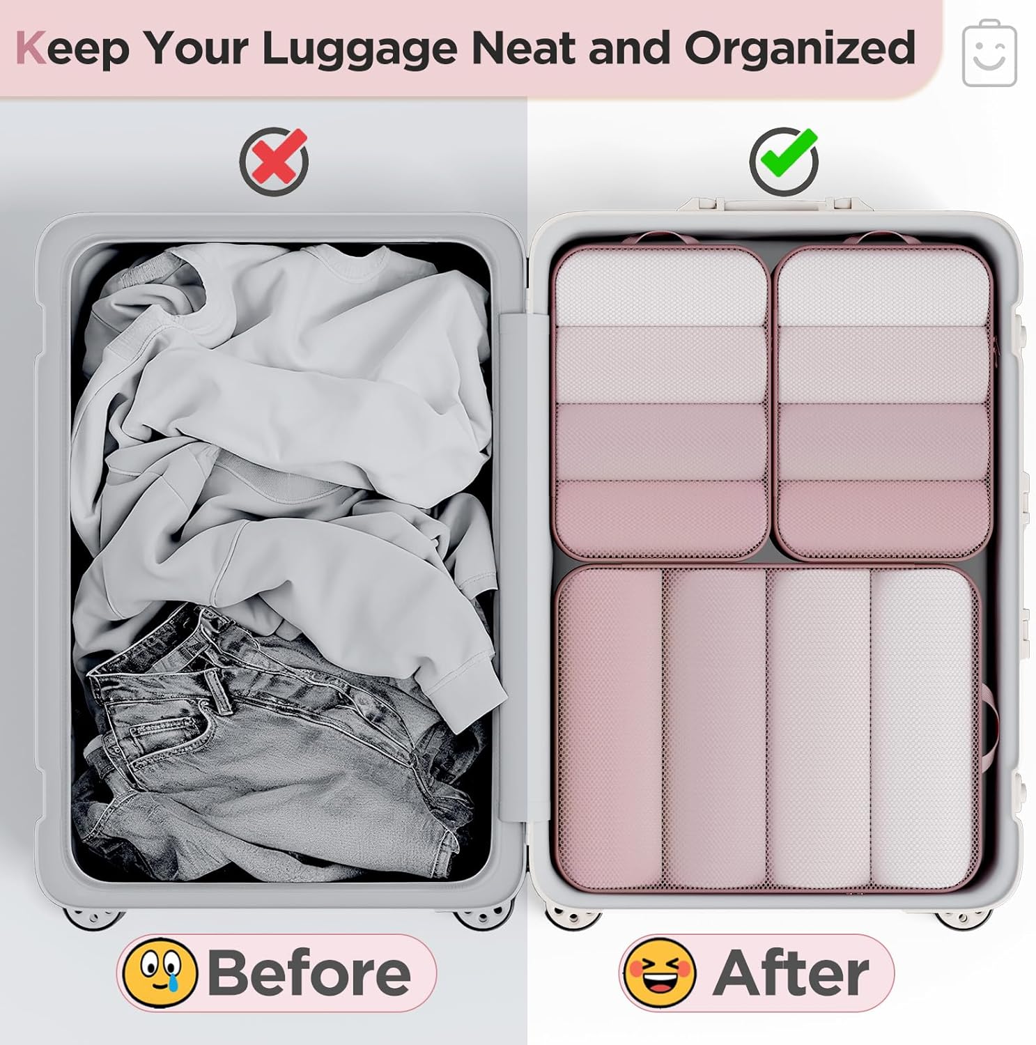 Space-Saving Compression – Simply zip the compression zippers to reduce volume—no extra tools needed. Maximize luggage space efficiently, allowing you to pack more with less bulk for a lighter travel experience.
