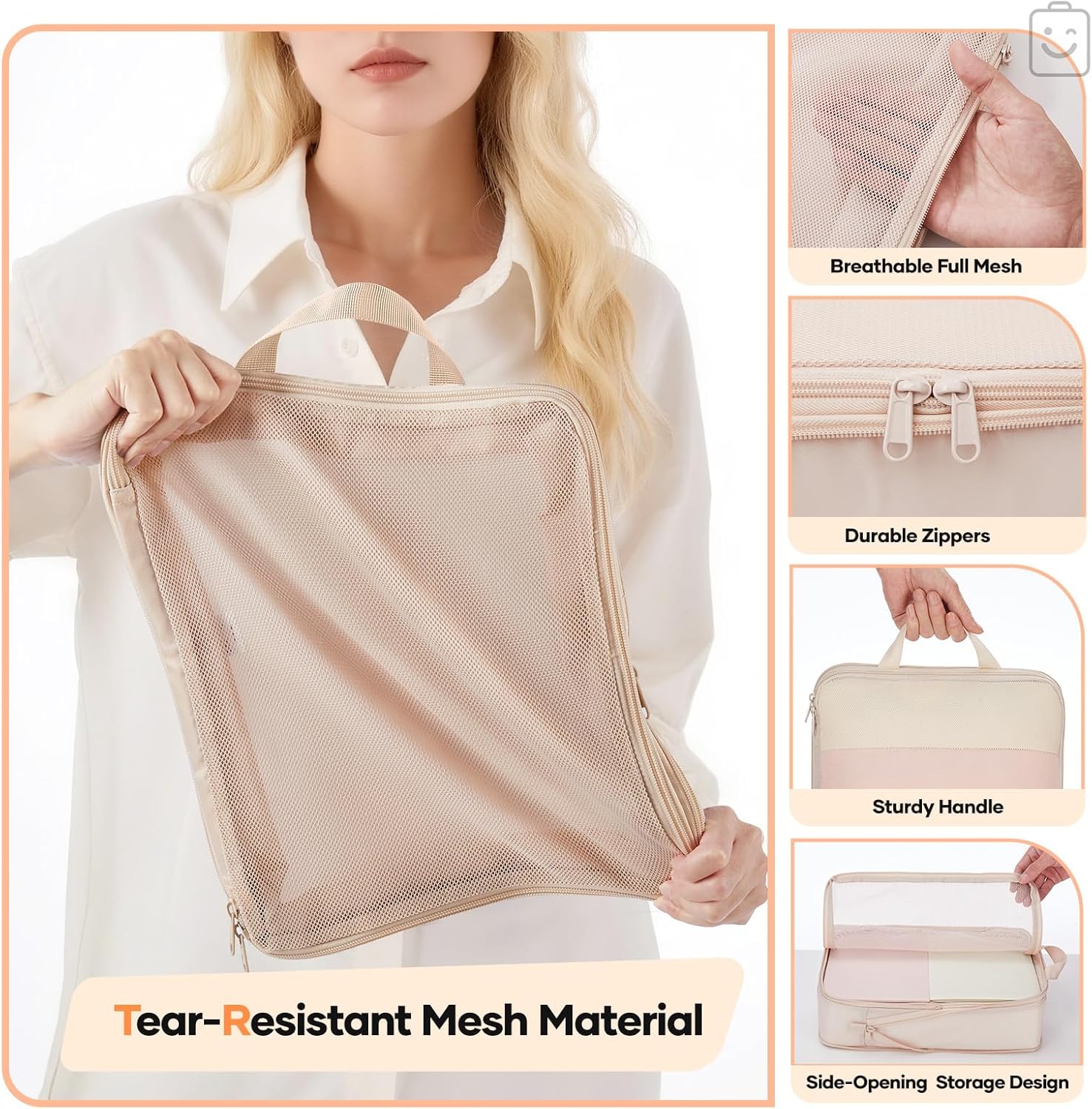Space-Saving Compression – Simply zip the compression zippers to reduce volume—no extra tools needed. Maximize luggage space efficiently, allowing you to pack more with less bulk for a lighter travel experience.