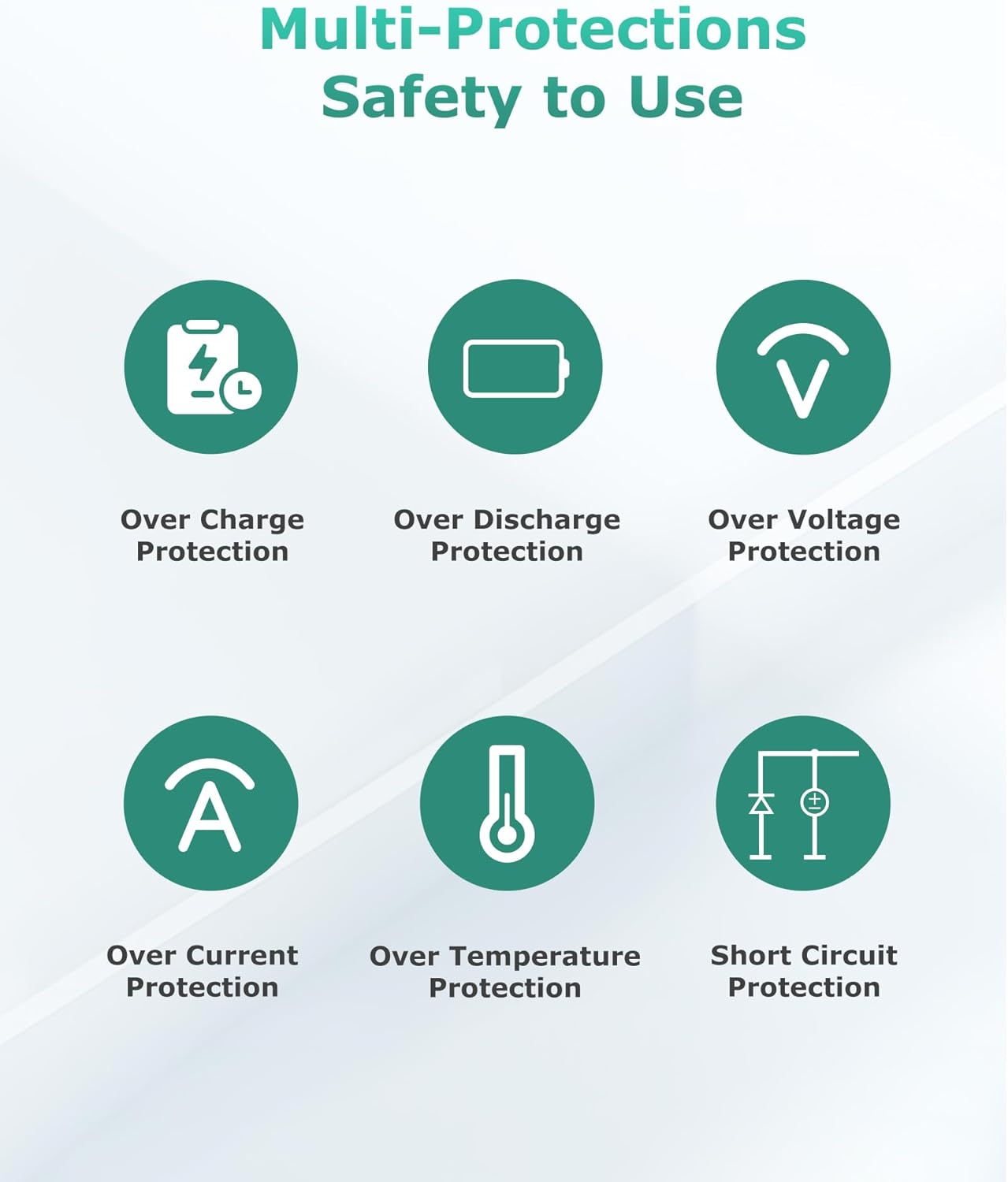 UL Certified: Includes advanced safety mechanisms such as over-voltage protection, over-current protection, short-circuit protection, and over-temperature protection to ensure the safety of both the charger and the connected batteries.