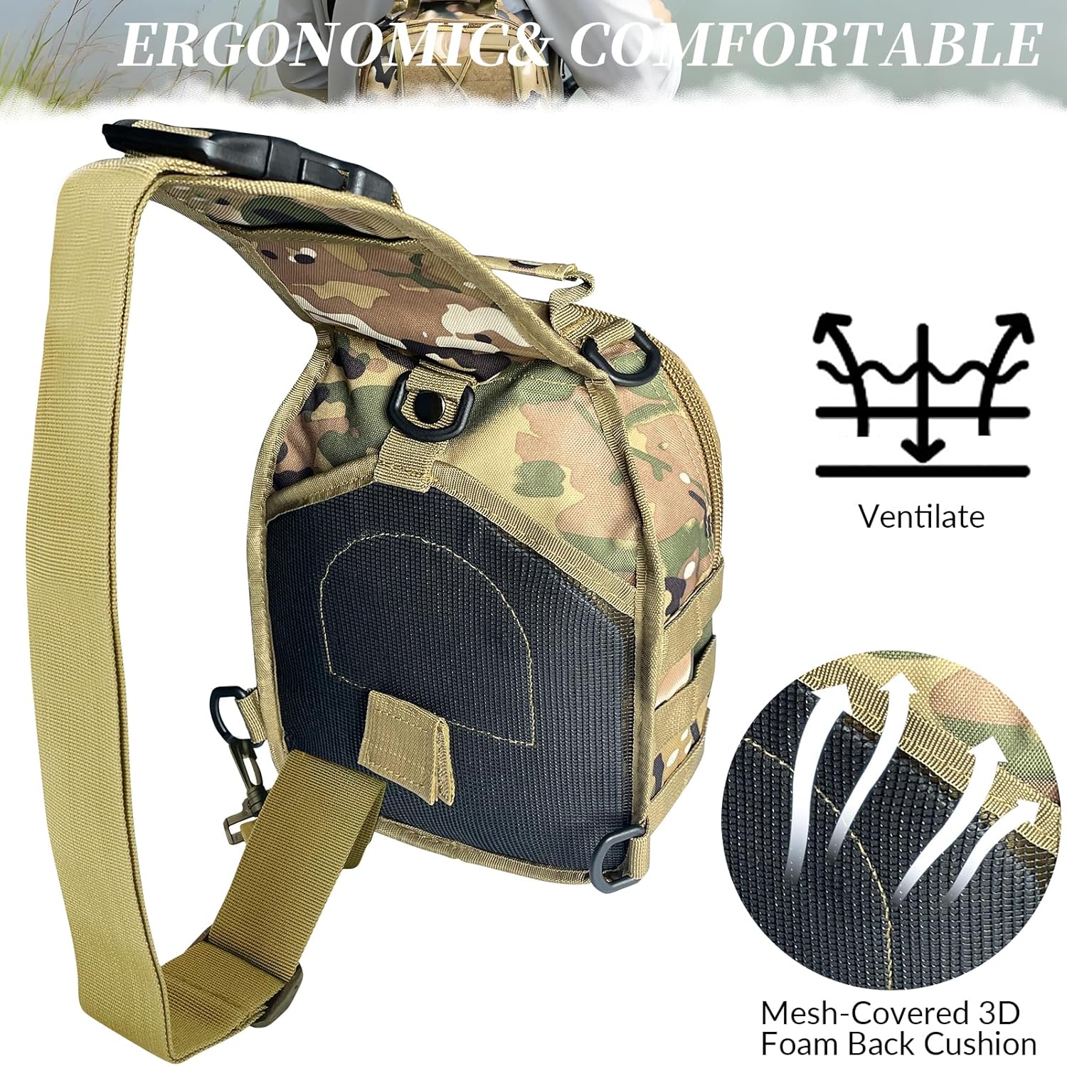 Practical And Comfortable Design: Fishing sling backpack is high-density fabrics, smooth zippers for easy pulling, the lengthened and widened shoulder pad design can effectively relieve shoulder fatigue, making it more comfortable and convenient