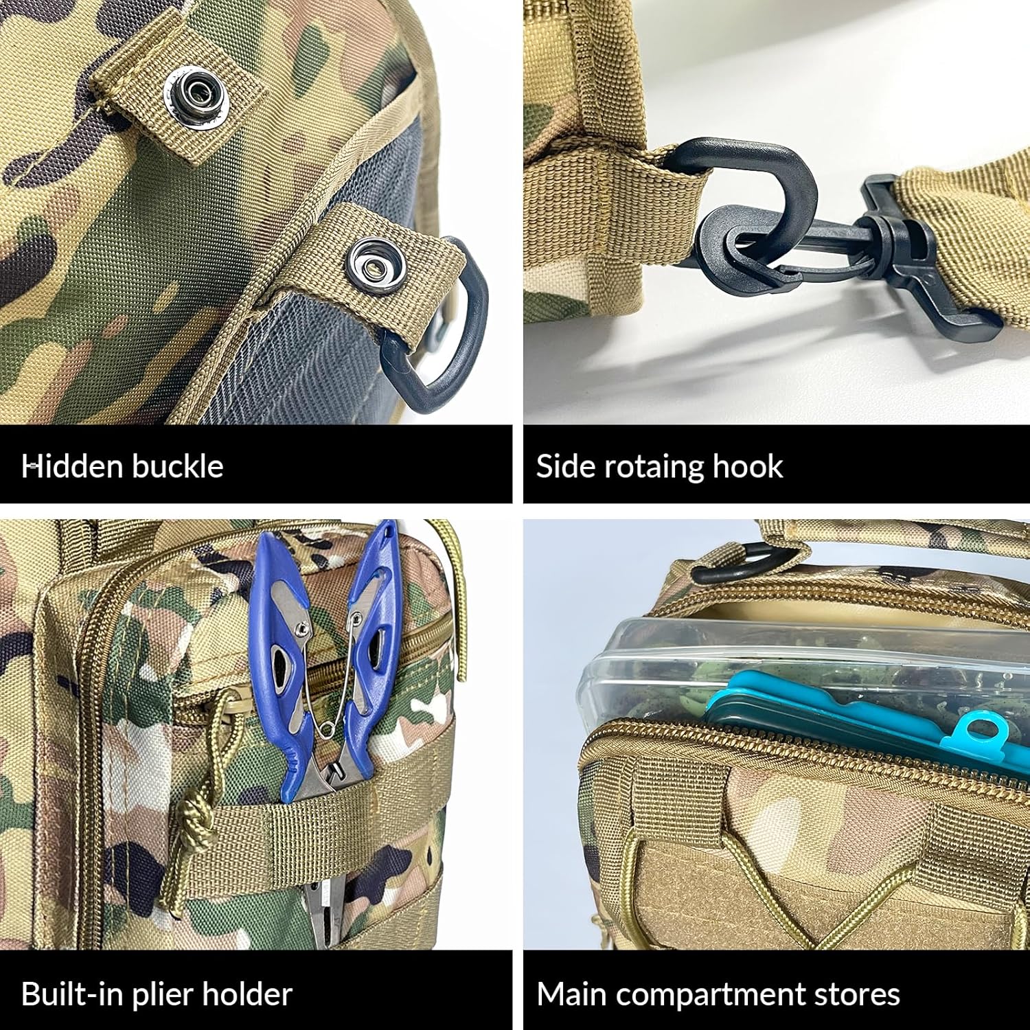Multiple Uses: By adjusting the shoulder straps, small fishing backpack can be adjusted to a handheld, crossbody, shoulder or chest bag style. This backpack is also very suitable for travel, camping, and outdoor cycling