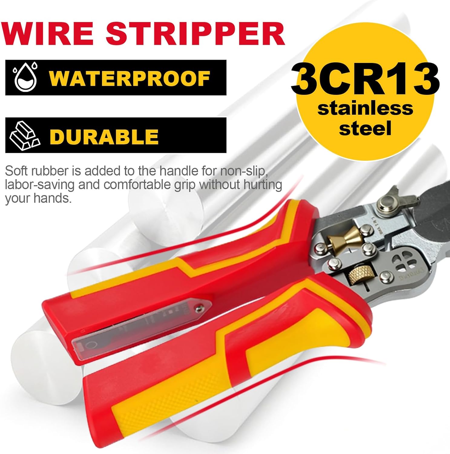 【 Material 】Wire strippers forged from 3CR13 stainless steel, sharp, waterproof and durable. Soft rubber is added to the handle for non-slip, labor-saving and comfortable grip without hurting your hands.