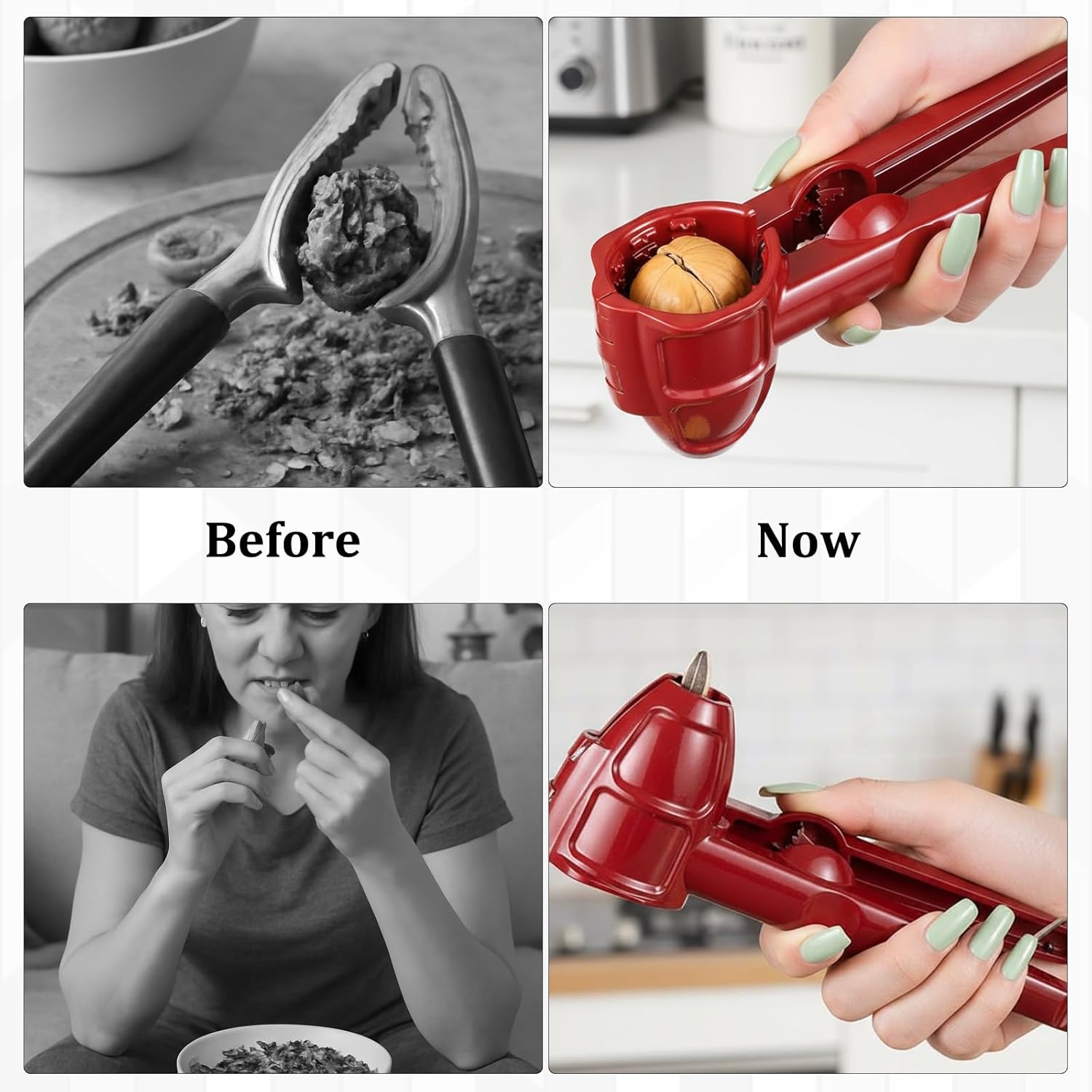 Multifunction Nutcracker with Non Slip Handle: Features an ergonomic design with comfortable grip for easy cracking of various nuts including walnuts, pecans, and chestnuts; The non-slip handle ensures stable operation even for users with weaker hand strength