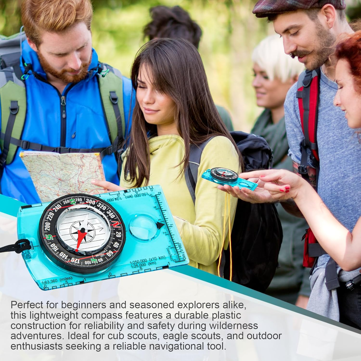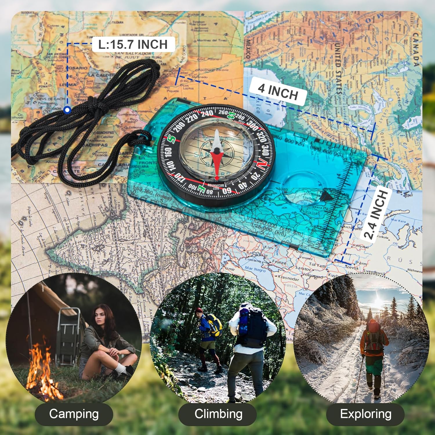 Accurate Navigation: The compass features a liquid-filled needle that ensures precise direction reading, perfect for hiking, camping, scouting, and other outdoor adventures