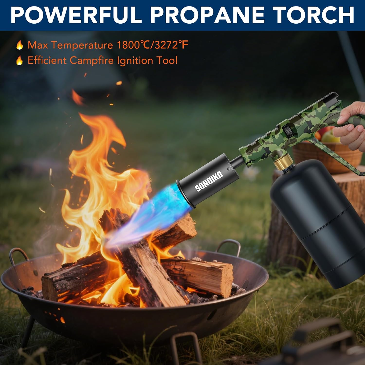 The SONDIKO torch has powerful fire, allows you to roast lump charcoal, fireplaces and fires in less than a minute, making it indispensable for your camping trips. It can also be used to clear weeds in your yard, welding or cooking straight.