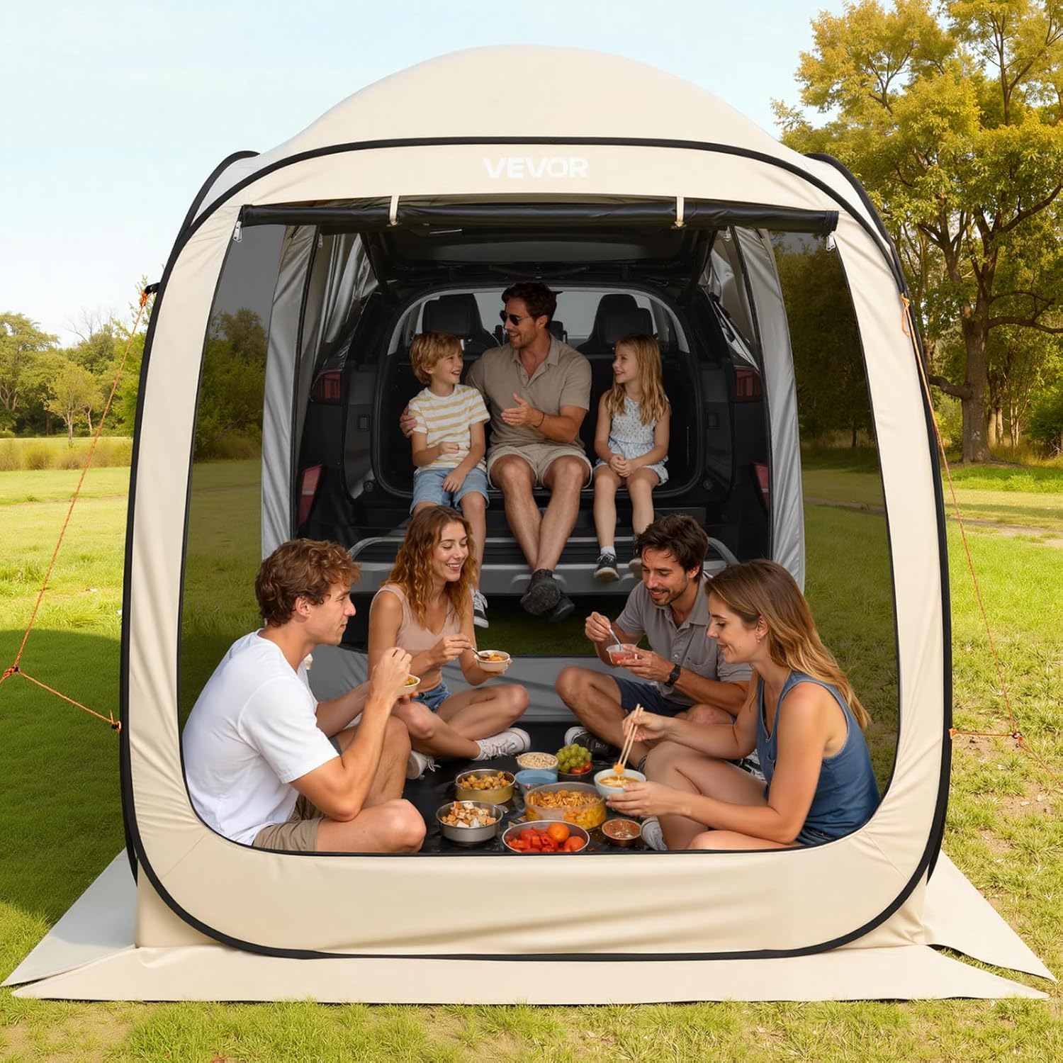 3-in-1 SUV Tailgate Tent for Car Camping: Designed to connect directly to your vehicle, this SUV tailgate tent expands your car camping space instantly. Use it as a tailgate tent for SUV camping, a standalone car camping tent, or a screened shelter beside your car—flexible for road trips, tailgates, and family outdoor use
