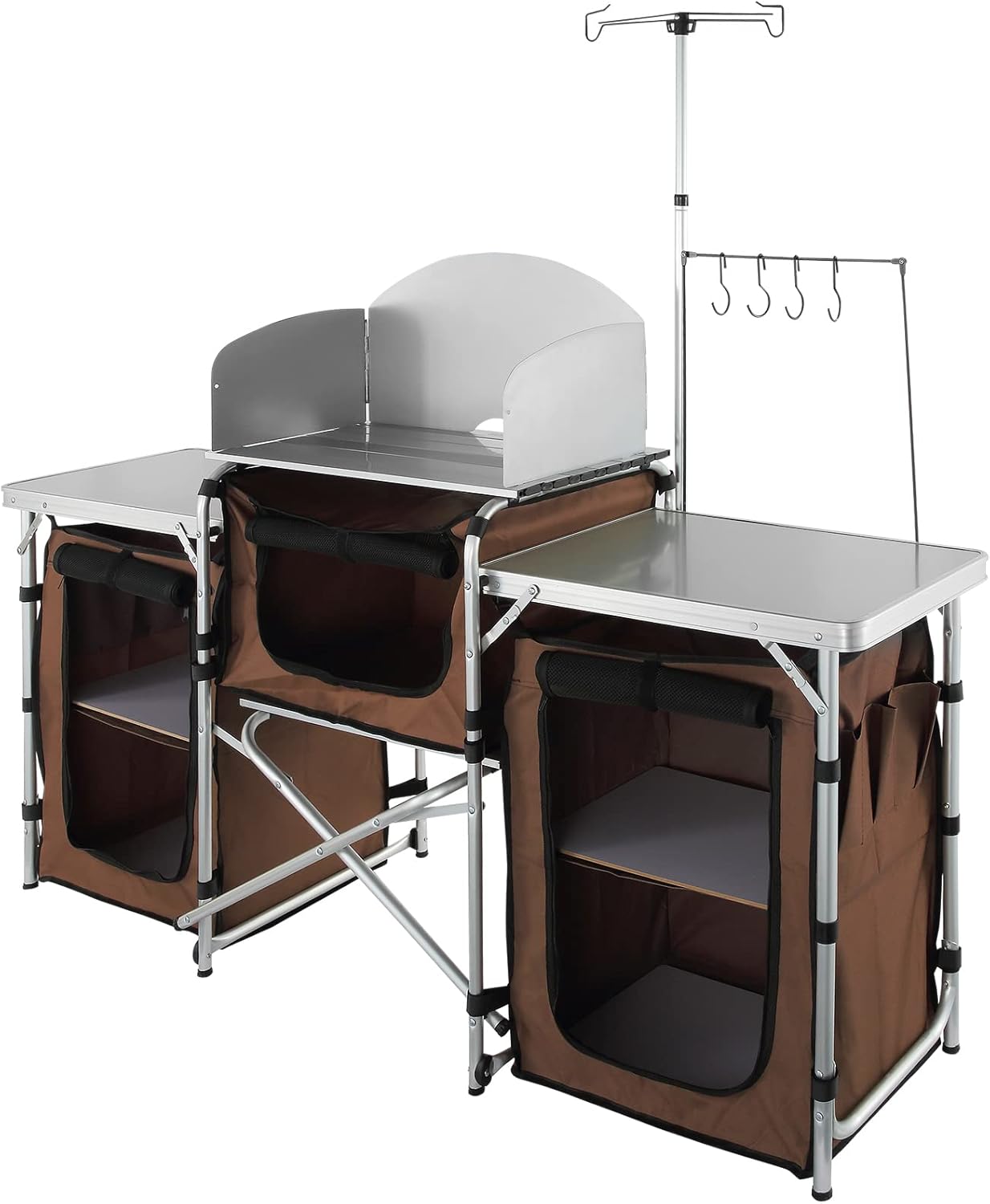 🥾 VEVOR Camping Kitchen Table, Folding Outdoor Cooking Table with Storage Carrying Bag, Aluminum Cook Station 3 Cupboard & Detachable Windscreen, Quick Set-up for Picnics, BBQ, RV Traveling, Brown — Review, Key Features & Current Price