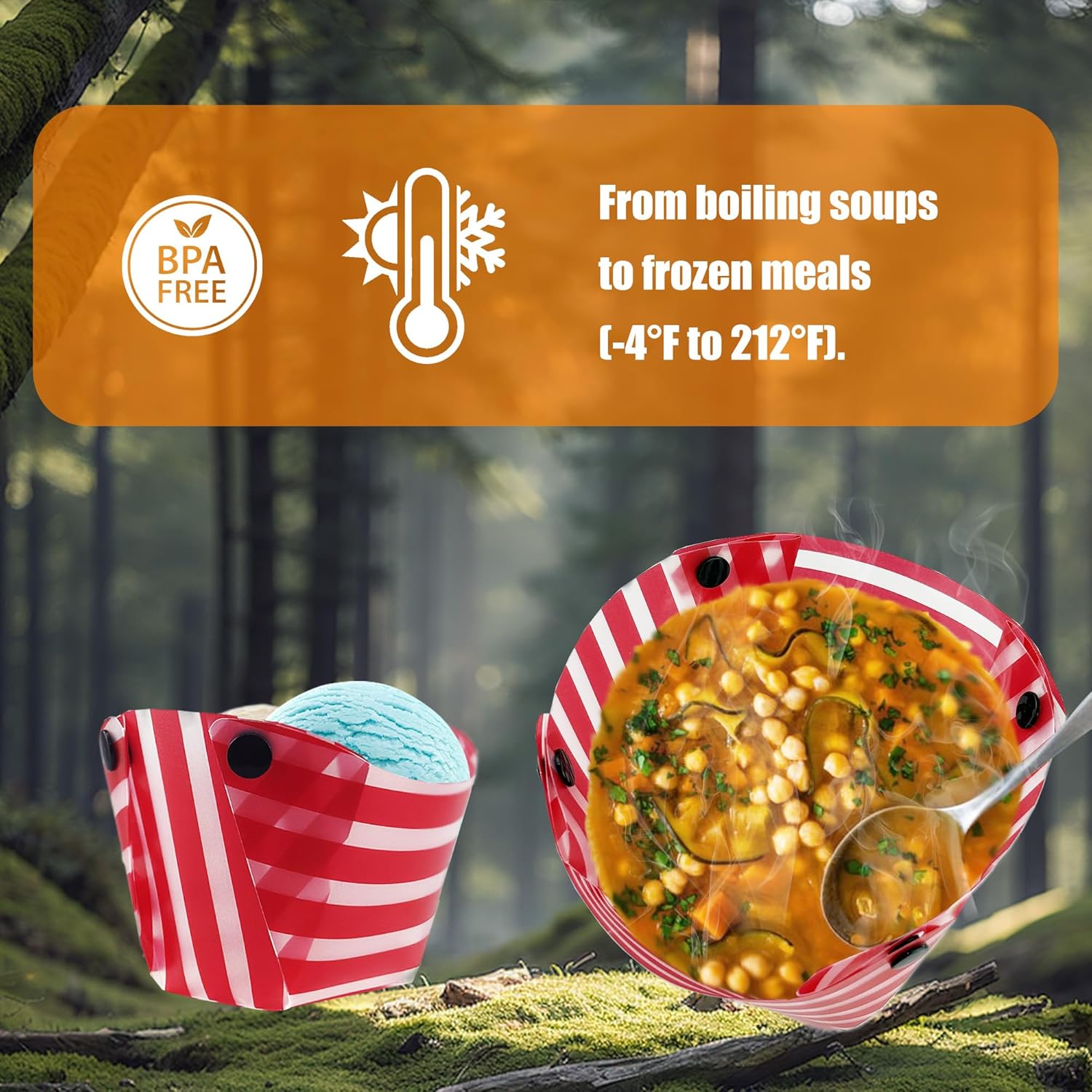 EXTREME TEMPERATURE READY: From boiling soups to frozen meals (-4°F to 212°F). BPA-free PP camping cooking gear shatterproof for rugged outdoor use, perfect for RV, backpacking, hiking and camping.