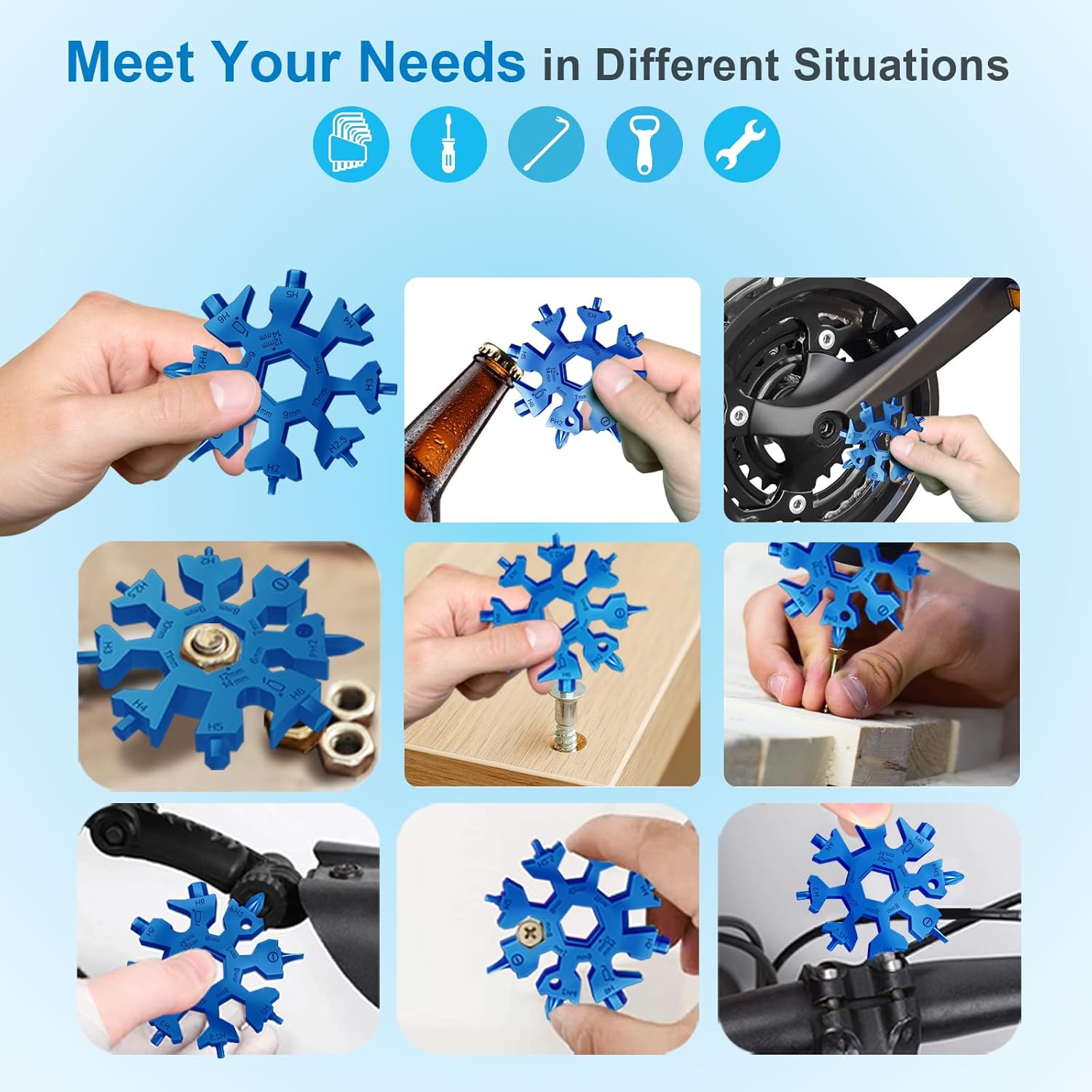 【18 Useful Functions in One】This snowflake multitool has 18 useful functions, including a screwdriver, bottle opener, box cutter, and hex wrenches in various sizes. It’s fully functional and convenient to carry around.