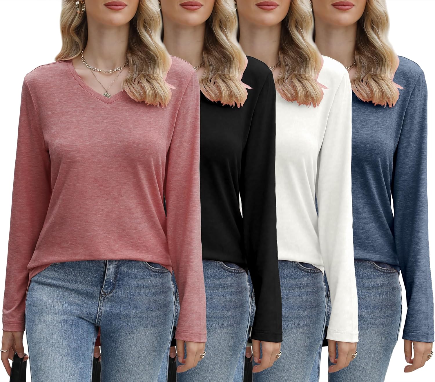 VILIGO Womens Long Sleeve V Neck Casual Loose Fit Tunic Tops Shirts 4 Pack S-4XL