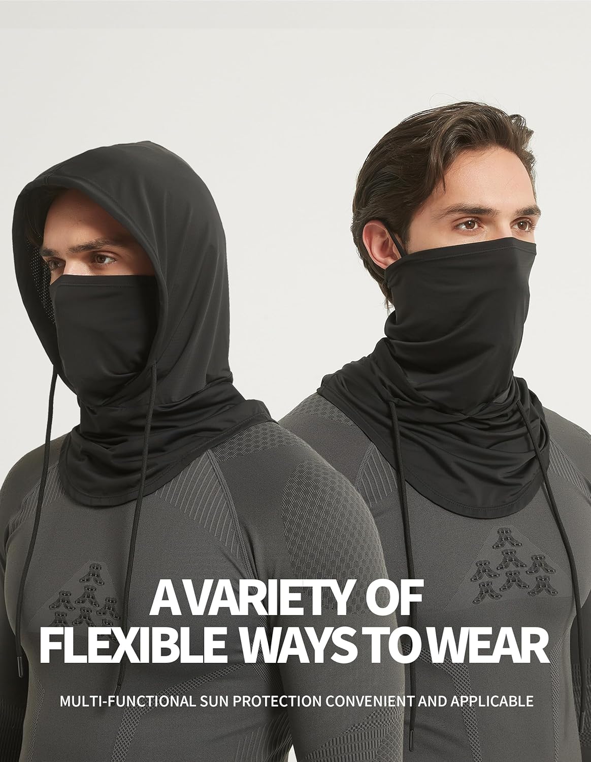This is a all-in-one style balaclava face mask. We updated much details: 1) with cooling & soft fabric; 2) with wider ear loops design.3)classic design It can be worn as a full face mask, half ear loops face mask, and hood mask. Meet your different needs and very convenient to use. Just enjoy your life and outdoor sports with it!