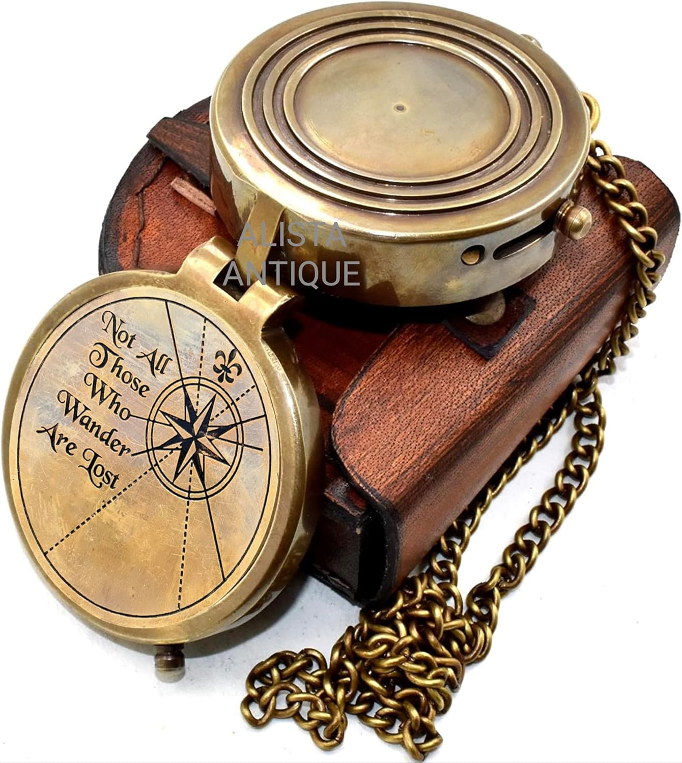 Inspirational Engraving with Meaning This solid brass compass is beautifully engraved with the famous quote “Not All Those Who Wander Are Lost,” serving as a thoughtful reminder to embrace life’s journey with courage and curiosity.