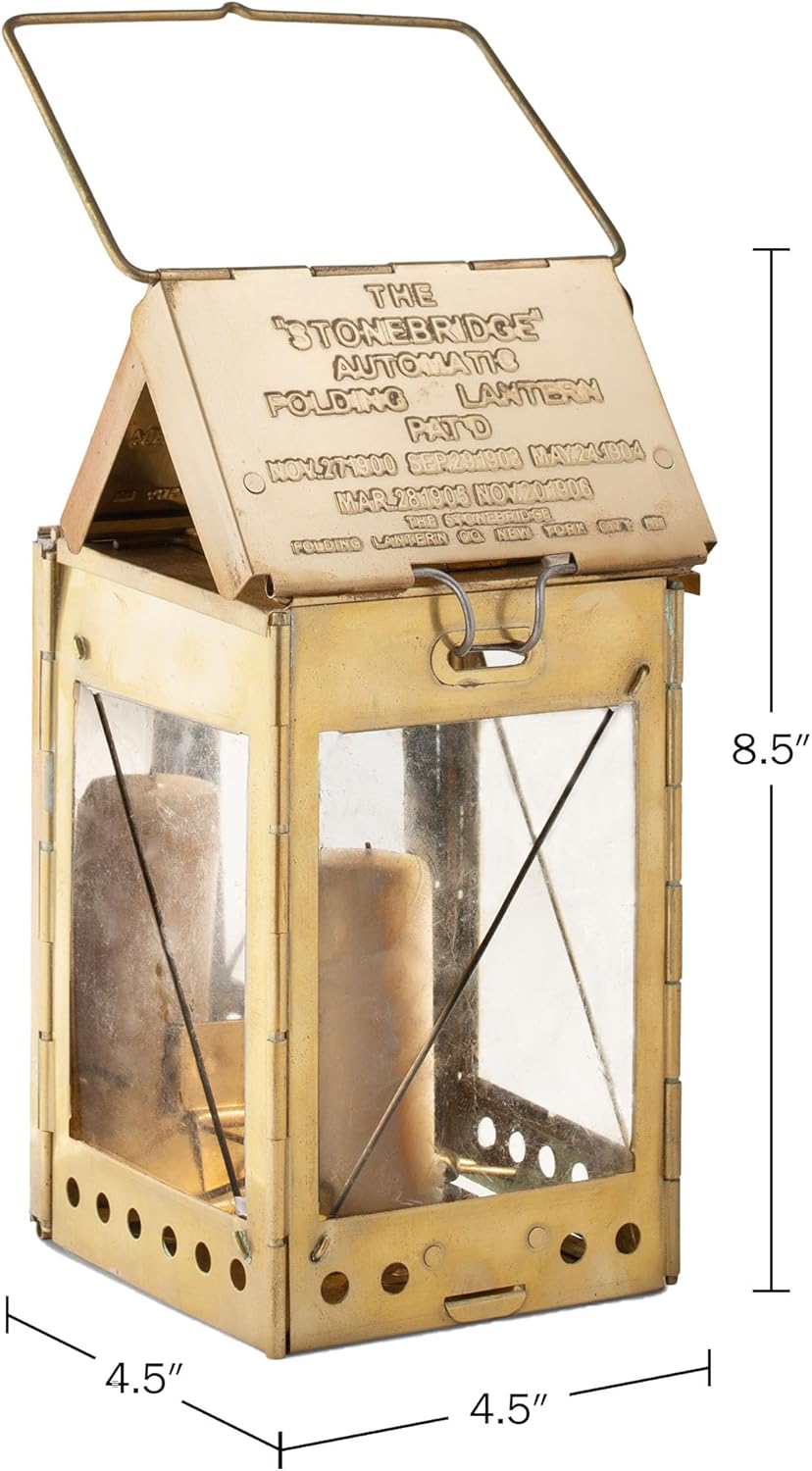 PRODUCT DETAILS – Materials: Brass. Dimensions: (L) 4.5” x (W) 4.5” x (H) 8.5”; Folded Flat – (L) 6.25” x (W) 4.5” x (H) 0.75”. Note: Survival Candles for Emergency Candle Holder Sold Separately. Color: Brass.