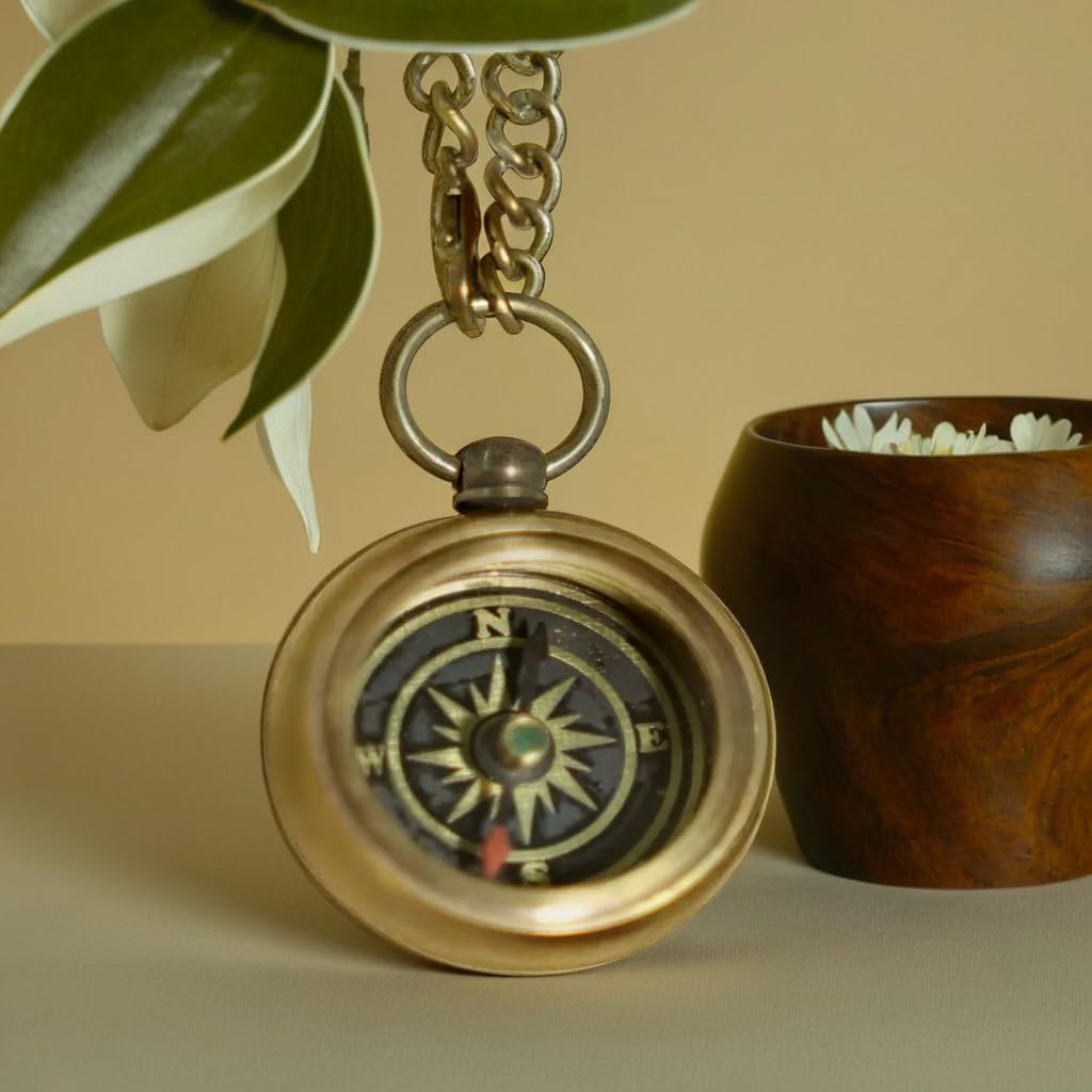 Antique Elegance: Features a beautifully crafted brass locket with a classic compass design, offering a vintage-inspired look that complements any outfit.