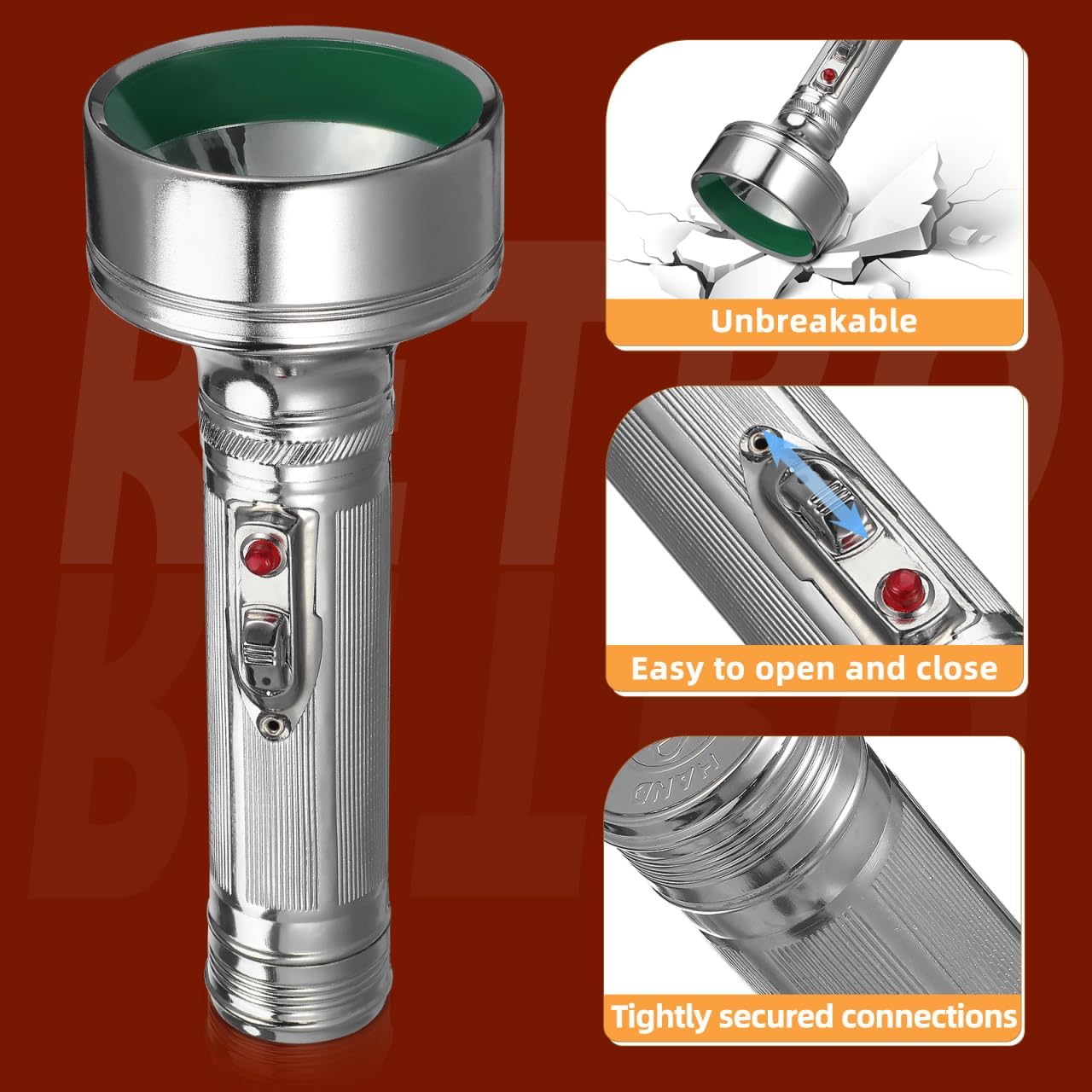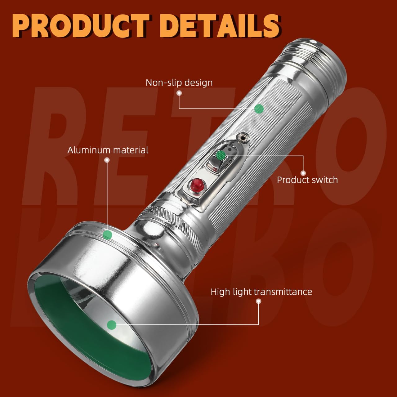 Crafted from old-fashioned metal materials this retro flashlight offers a solid build that reflects its era and use over time as a functional or decorative piece