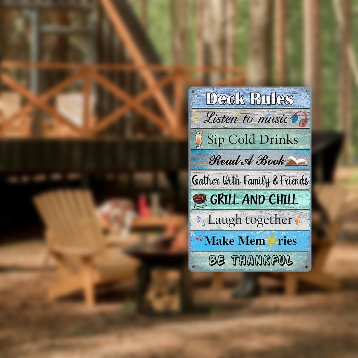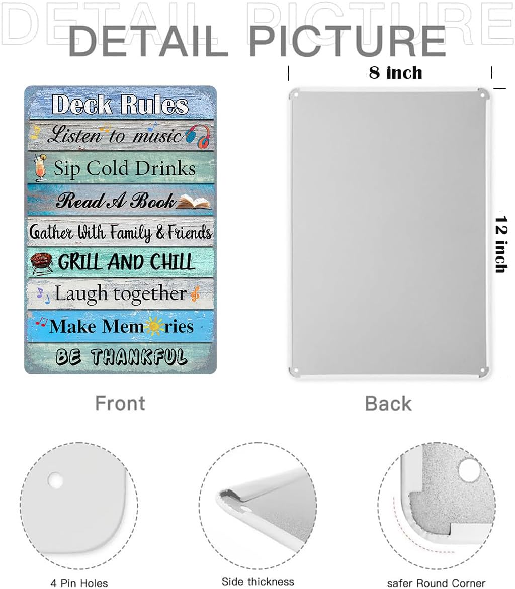 Deck Rules Sign: A charming reminder of how to enjoy your outdoor space with music, cold drinks, books, and great company