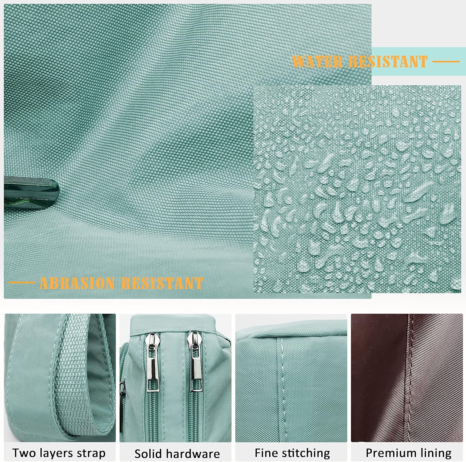 With 5 zippered pockets ,2 inside pockets.there’s room for it all, including passport, wallet, snacks, books, and more.You can also put umbrellas and water bottles in the pockets on both sides of the bag.