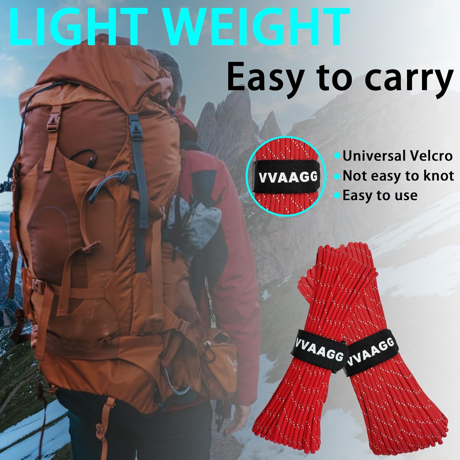 This camping rope has a compact design with a quick-release strap that unfolds in seconds and is easy to store after use.