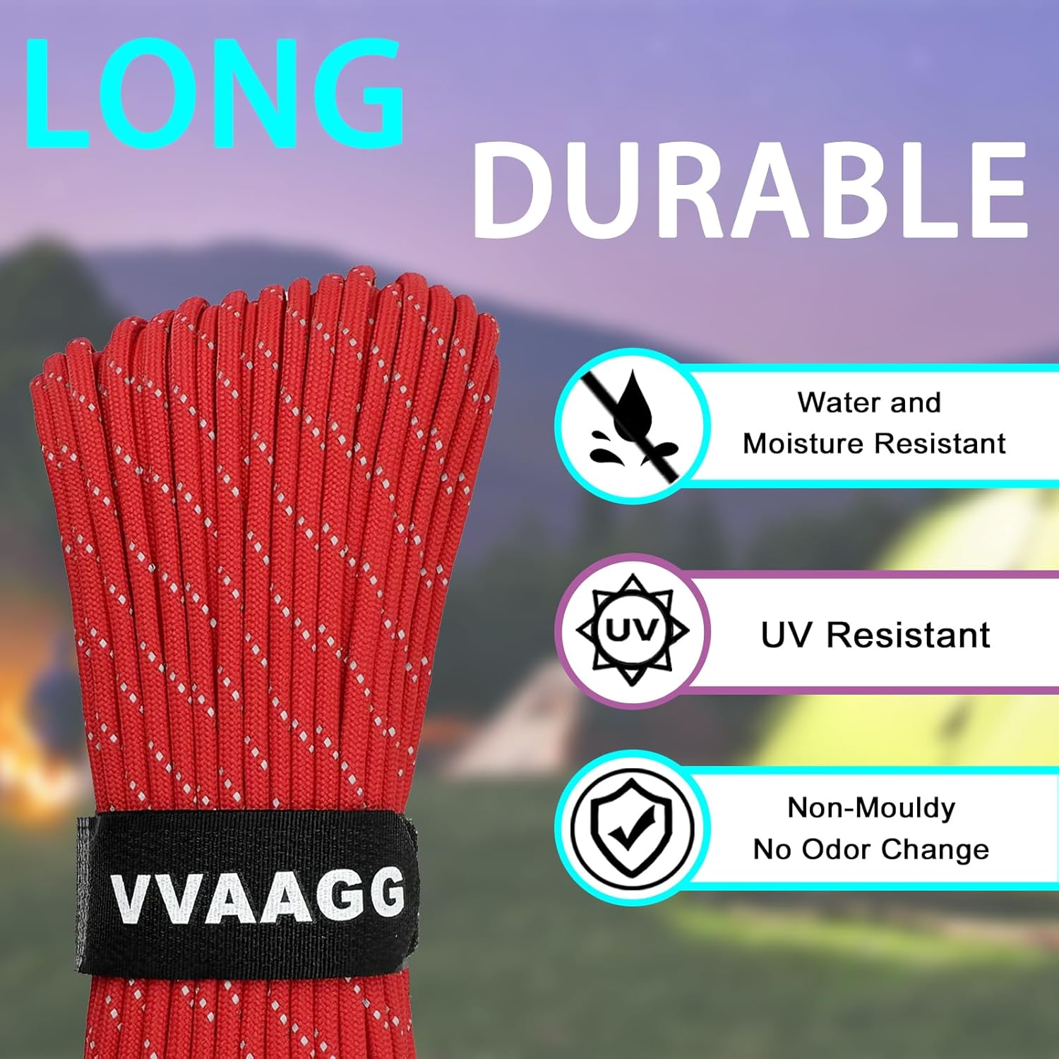 Made of 7 strands of core weave, this VVAAGG Black Paracord Rope is a strong and sturdy rope that can handle various outdoor activities like camping and hunting.