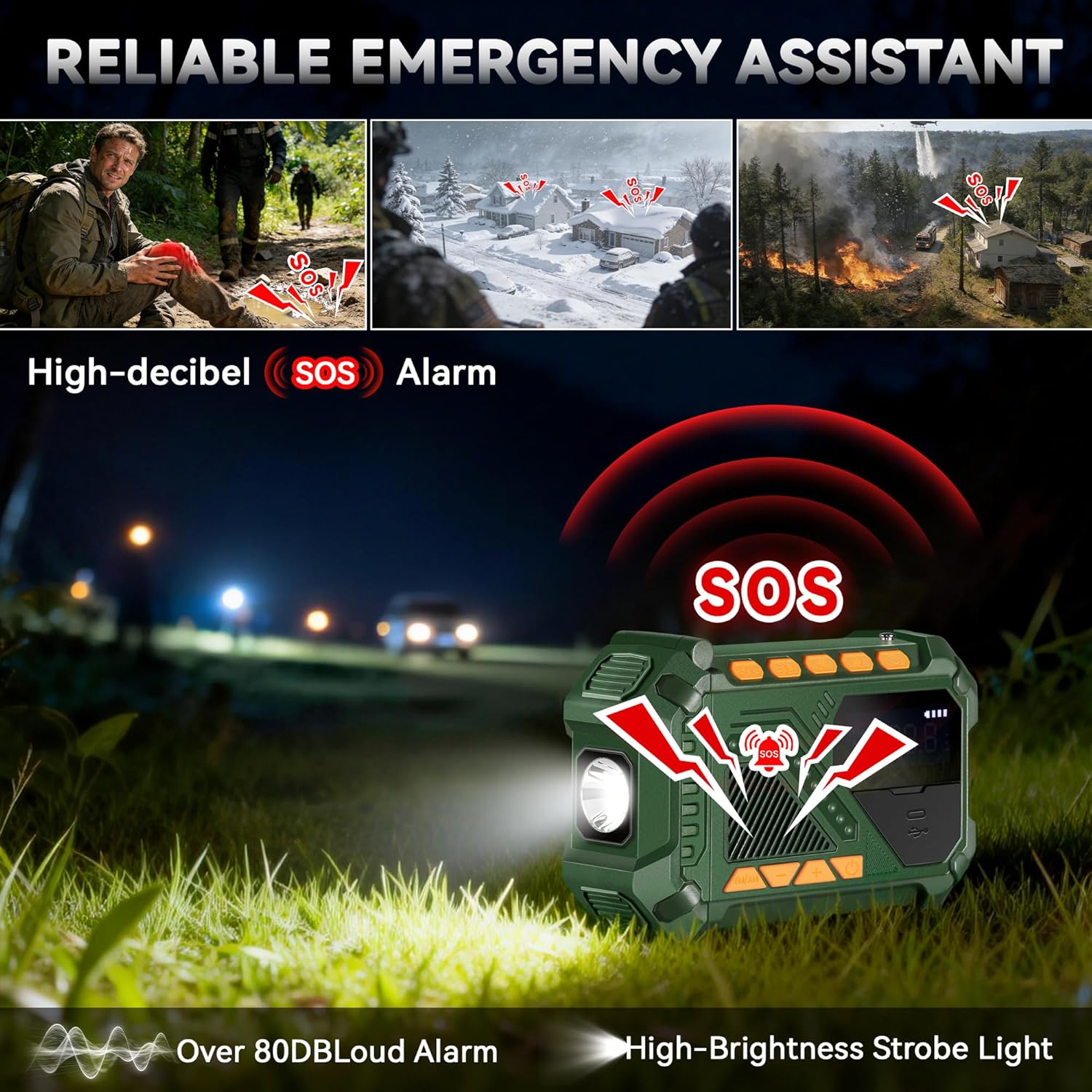 【NOAA Weather Radio with SOS Alarm】Select the “WB” band to access 7 NOAA weather channels and tune into your local weather station. This lets you anticipate approaching severe weather and make timely evacuation preparations. In any emergency, press and hold the SOS button for 3 seconds to trigger a loud alarm and a flashing emergency strobe. A great emergency essential for extreme weather conditions including hurricanes, tsunamis, wildfires, and blizzards.