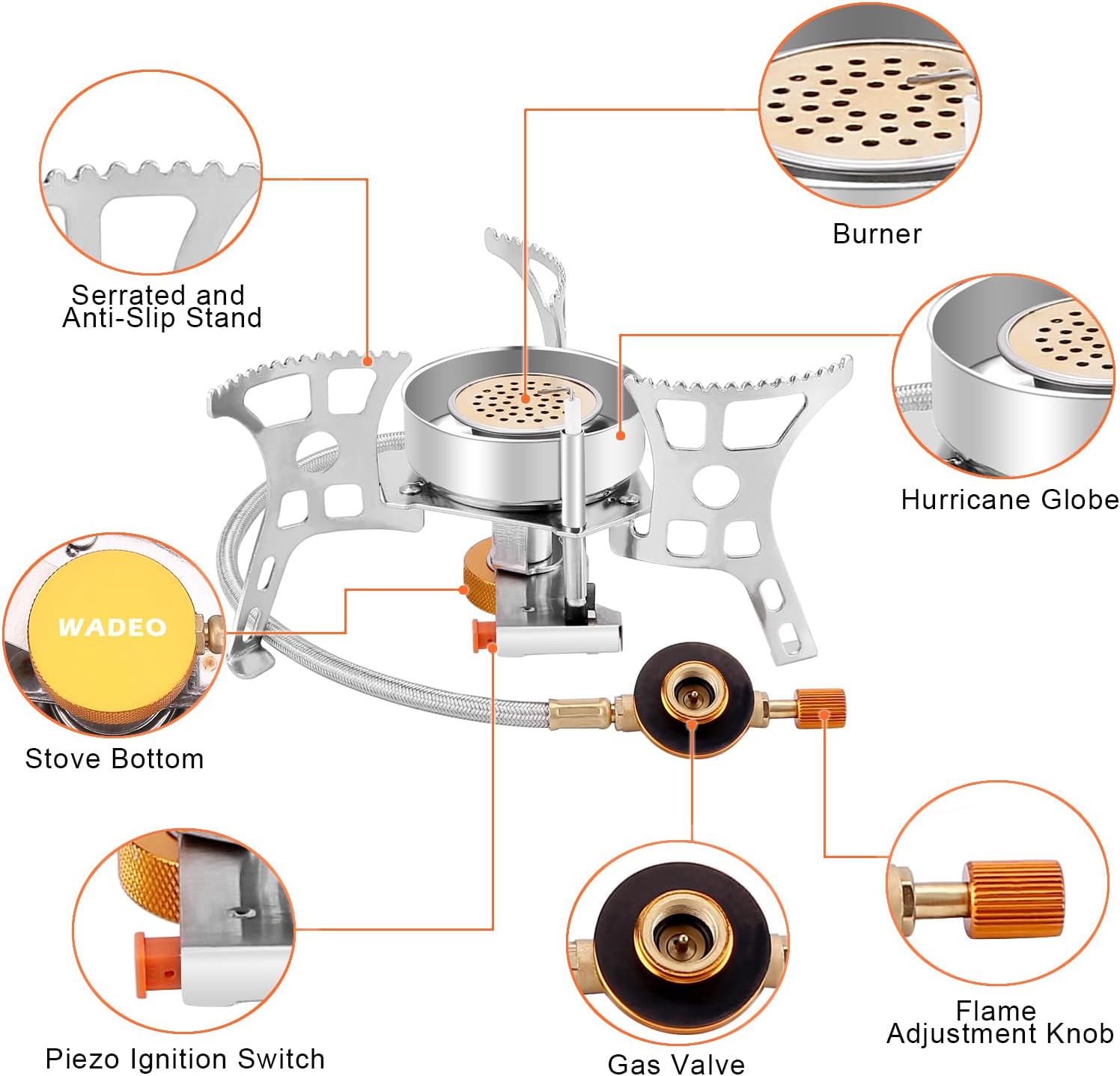π₯Ύ WADEO 3900W Windproof Camping Stove, Camping Gas Stove with Piezo Ignition, Backpacking Stove Portable Camping Stove with Two Fuel Canister Adapter for Outdoor Backpacking Hiking and Picnic β Review, Key Features & Current Price