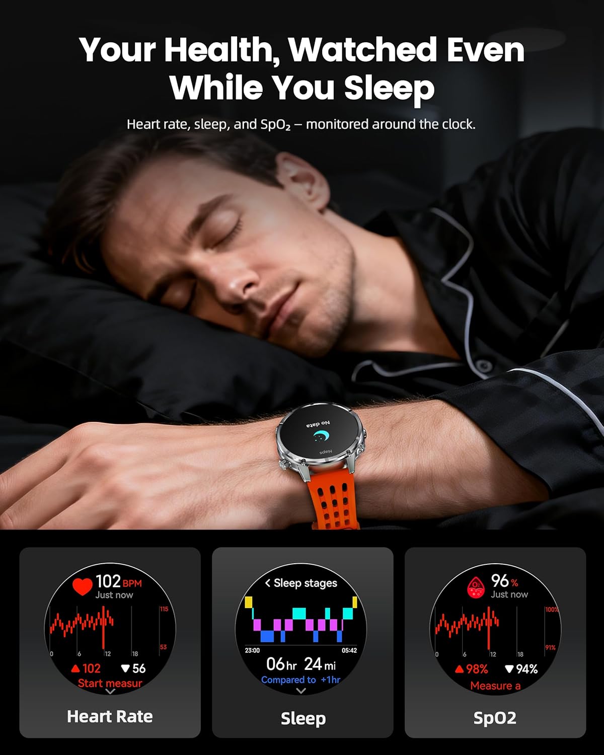 5️⃣【 170+ Sports Modes + Daily Wellness Tracking】Offers 170+ indoor and outdoor sports modes, including running, cycling, swimming, strength training, and more. Provides all-day heart rate, SpO₂, sleep, stress, and activity trend tracking to support general fitness and lifestyle insights. Designed as a versatile sports and fitness smartwatch for active users.
