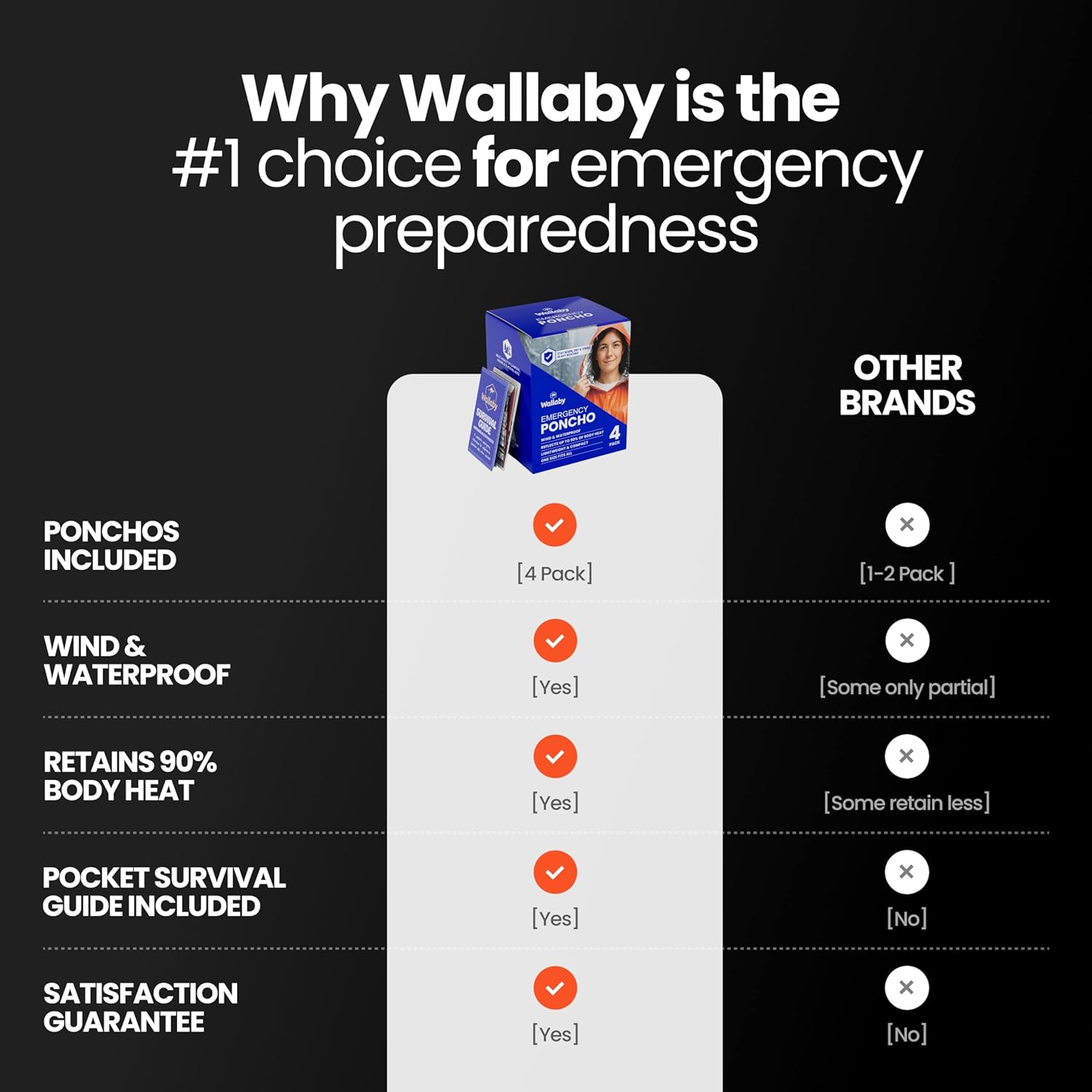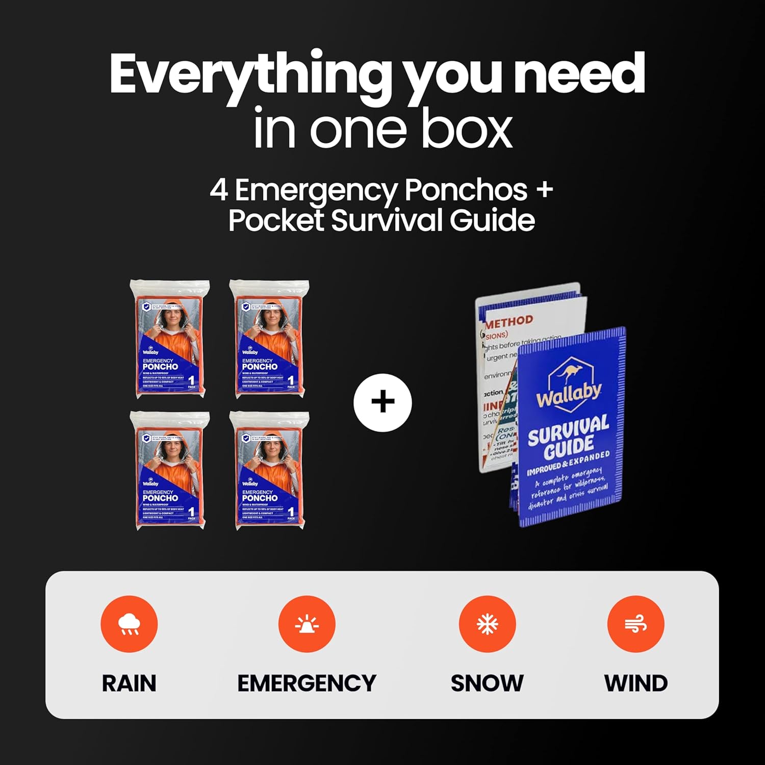 πππ ππππππππ πππππ: Each poncho is sealed for long-term storage and rapid deployment, and includes a free pocket survival guide for emergency preparedness and outdoor safety.
