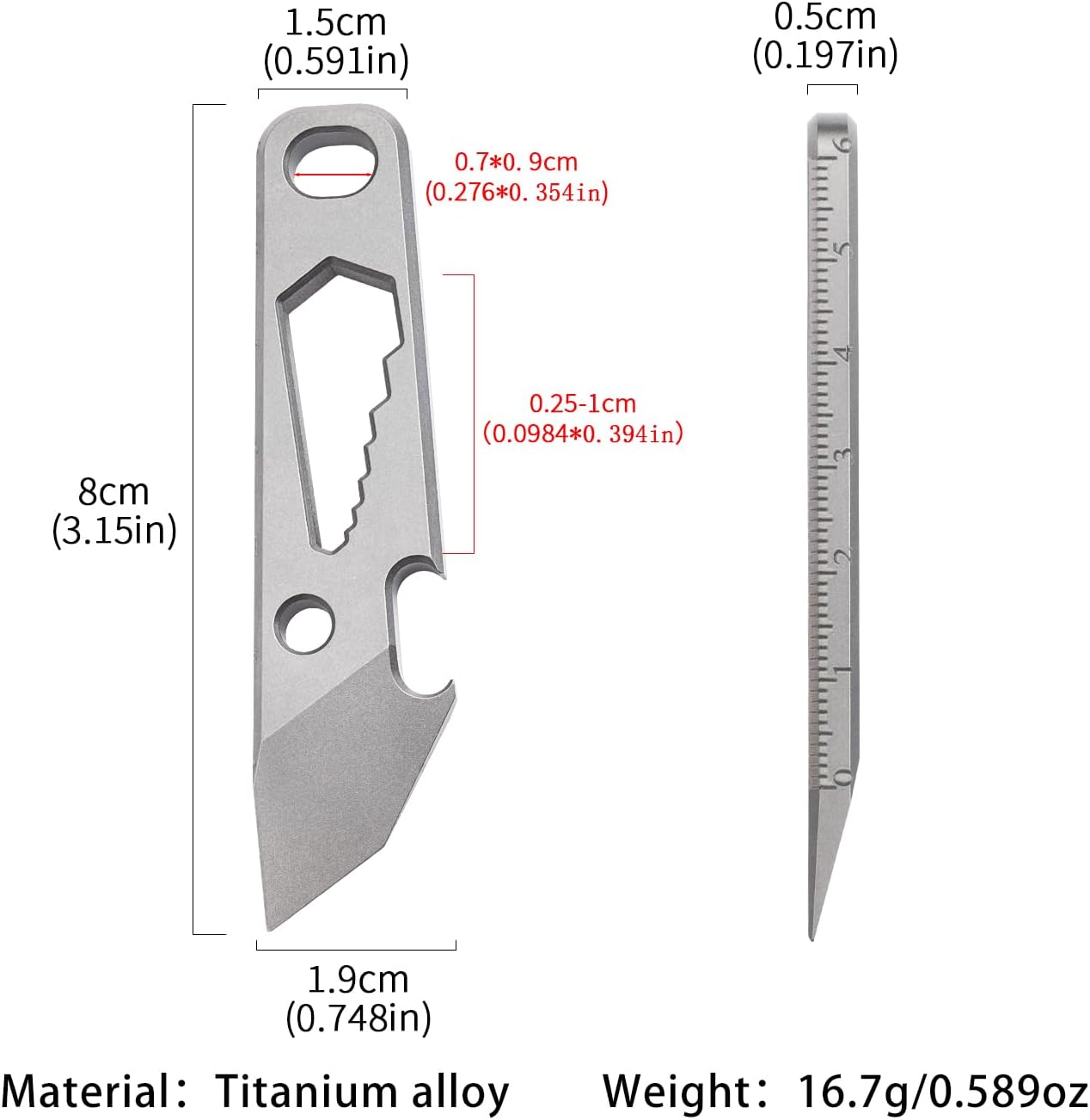 🪶 Ultra-Light & Pocket-Sized Design- Measuring only 3.15 x 0.59 inches and weighing just 16.7g, this keychain pry bar is remarkably lightweight and portable. It clips easily to keys, belts, or packs, ensuring you’re always equipped.