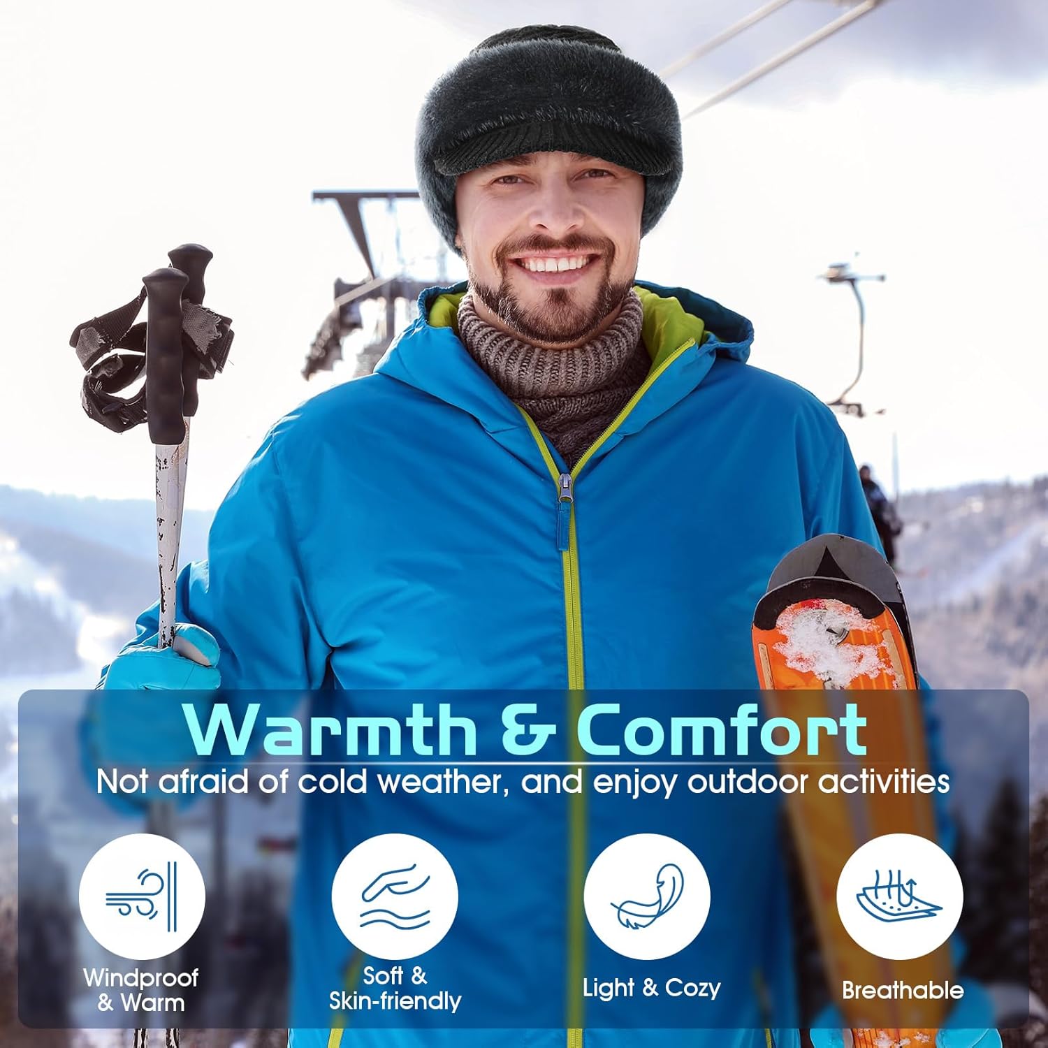 Cover your ears, neck and most cheek to provide ideal warmth and protectionDouble-layer design, durable and breathable outer and soft warm inner.Soft, skin-friendly, windproof, not easy to pillling.Stretchable to a better fit and cozier wear.
