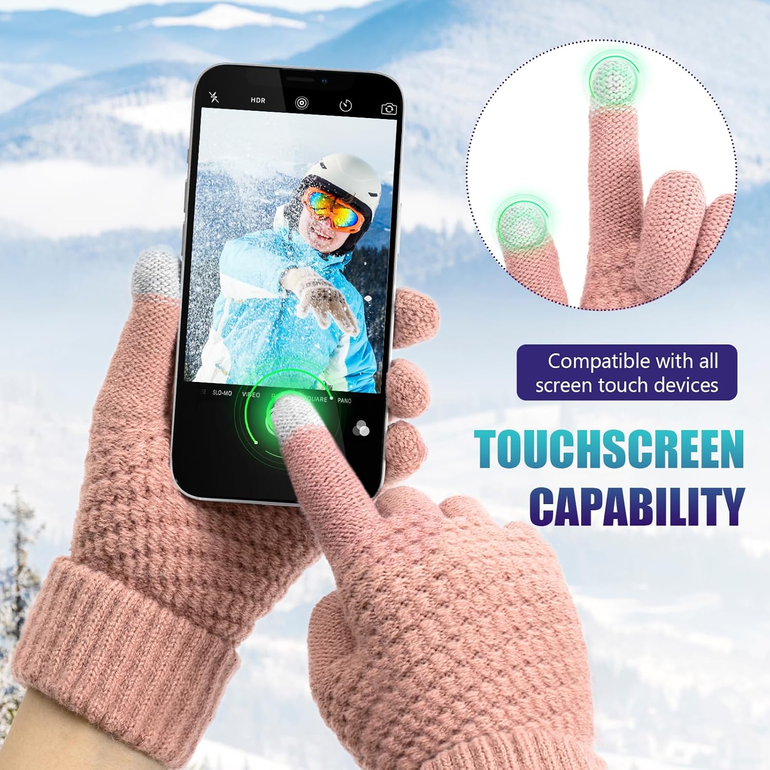 Winter Gloves for Women – Elastic Cuff Cozy Thick Touchscreen Texting Knit Gloves