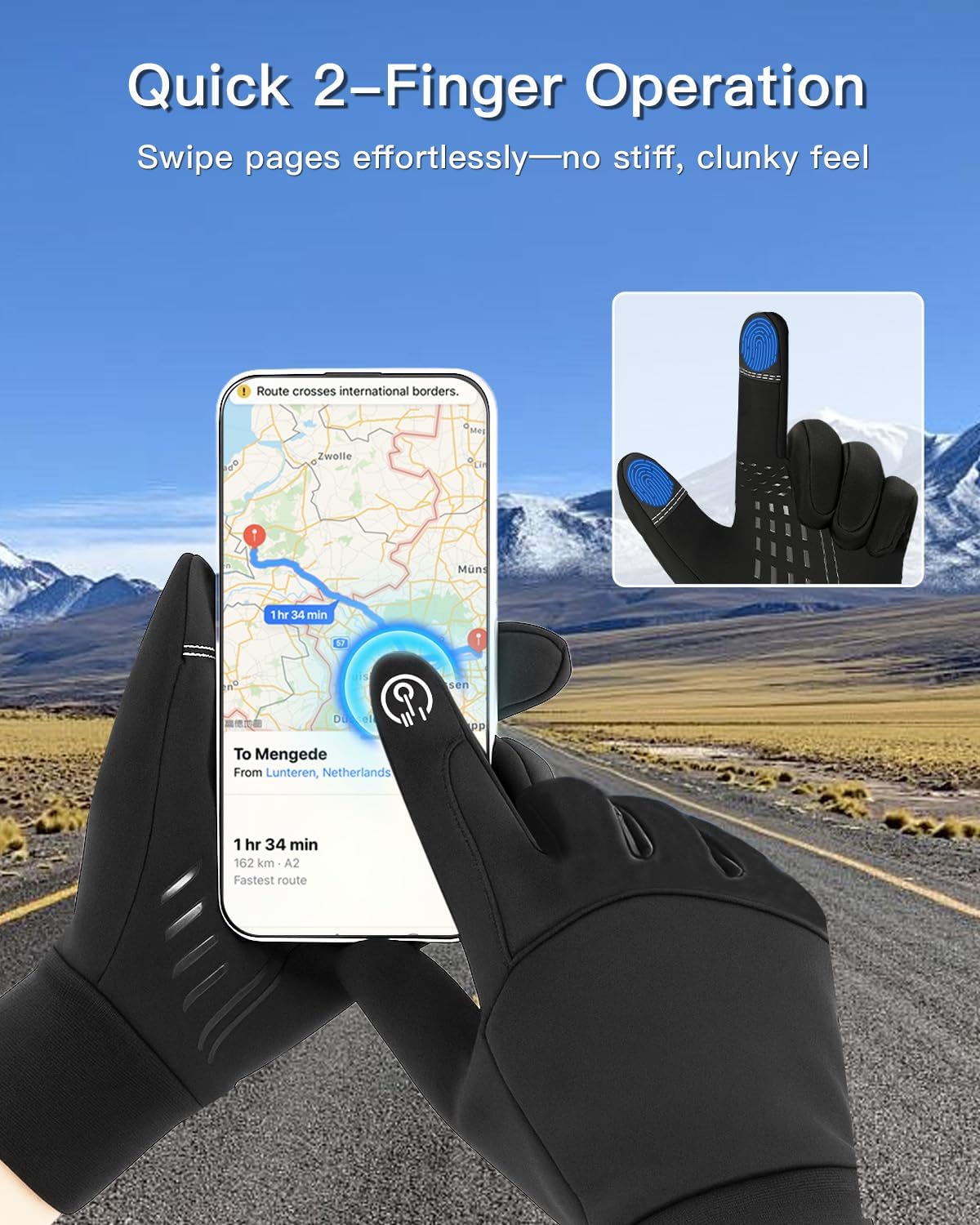 Five-Finger Sensitive Touchscreen Functionality: All five fingertips feature advanced conductive PU material, allowing you to operate smartphones, tablets, photograph, or GPS devices with ease — no need to remove your thermal touchscreen gloves. Responsive and precise touch control keeps you connected on the go, even in freezing temperatures