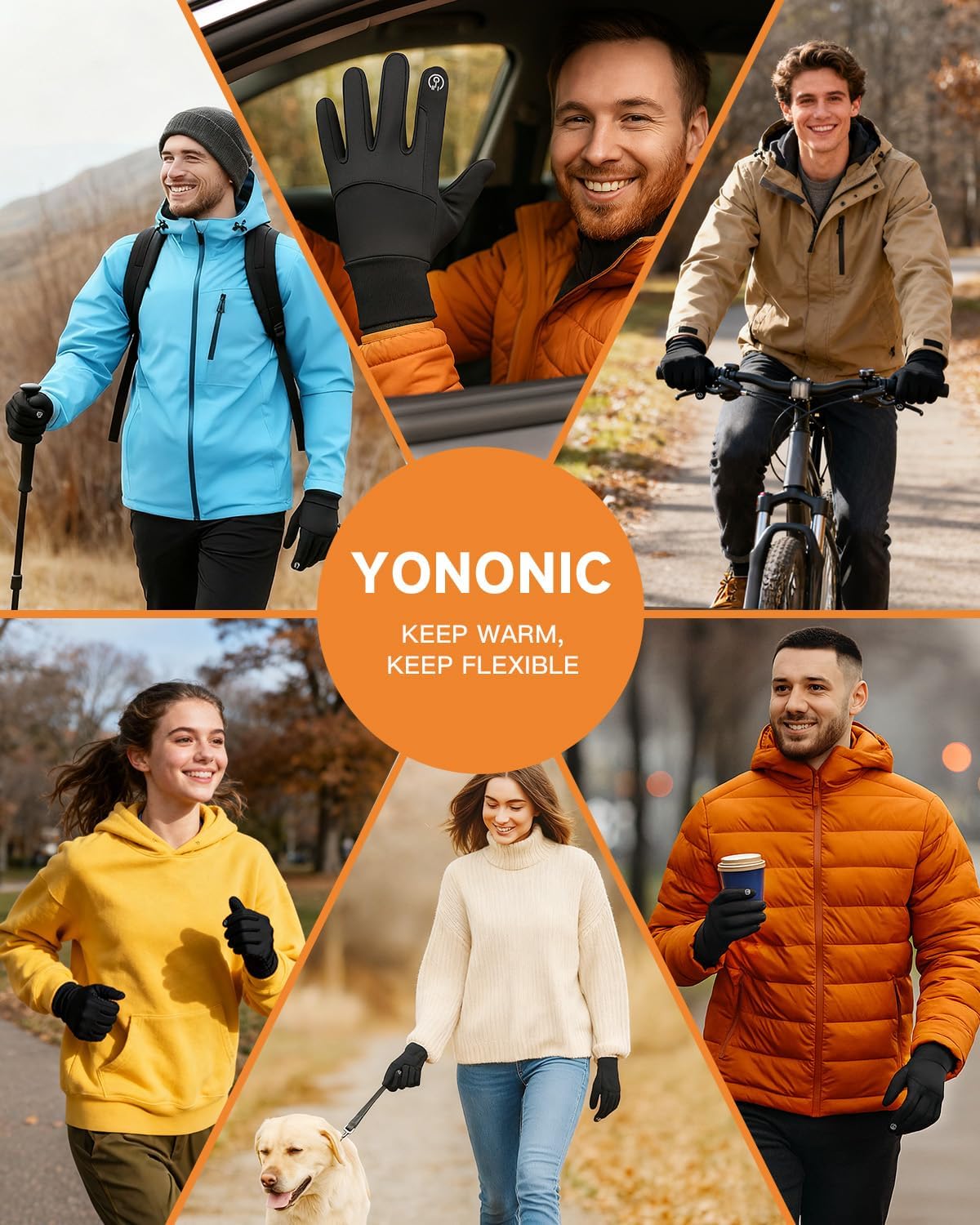 6-Layer Thermal Insulation for Cold Weather Protection: YONONIC mens and womens winter gloves built with 6 layers of warmth, including 3M Thinsulate insulation, thermal cotton, and soft fleece lining, keep your hands warm and comfortable. Ideal for daily winter wear, cycling, hiking, and skiing in moderate cold. Note: Not recommended for extreme subzero conditions