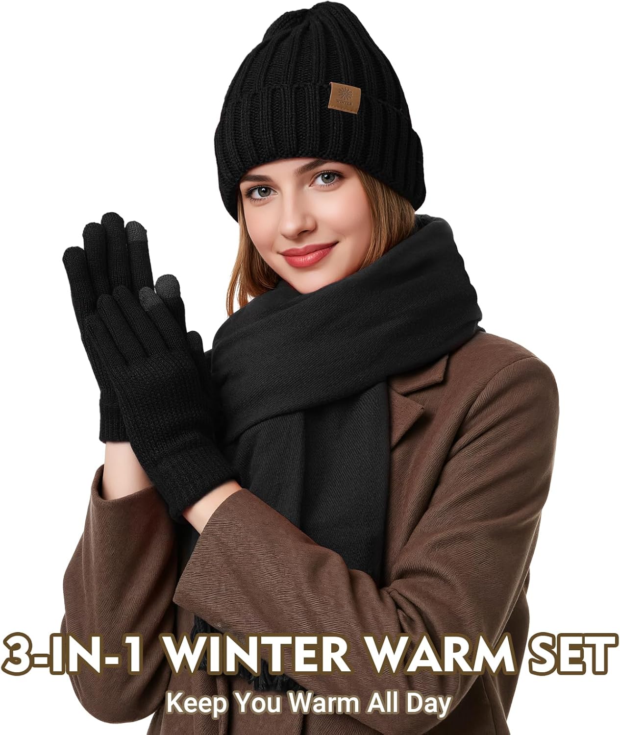 This stylish hat, scarf, and gloves set for women is designed to keep you cozy in cold weatherPerfect for running, skiing, sledding, camping or any winter outdoor sports and daily activities
