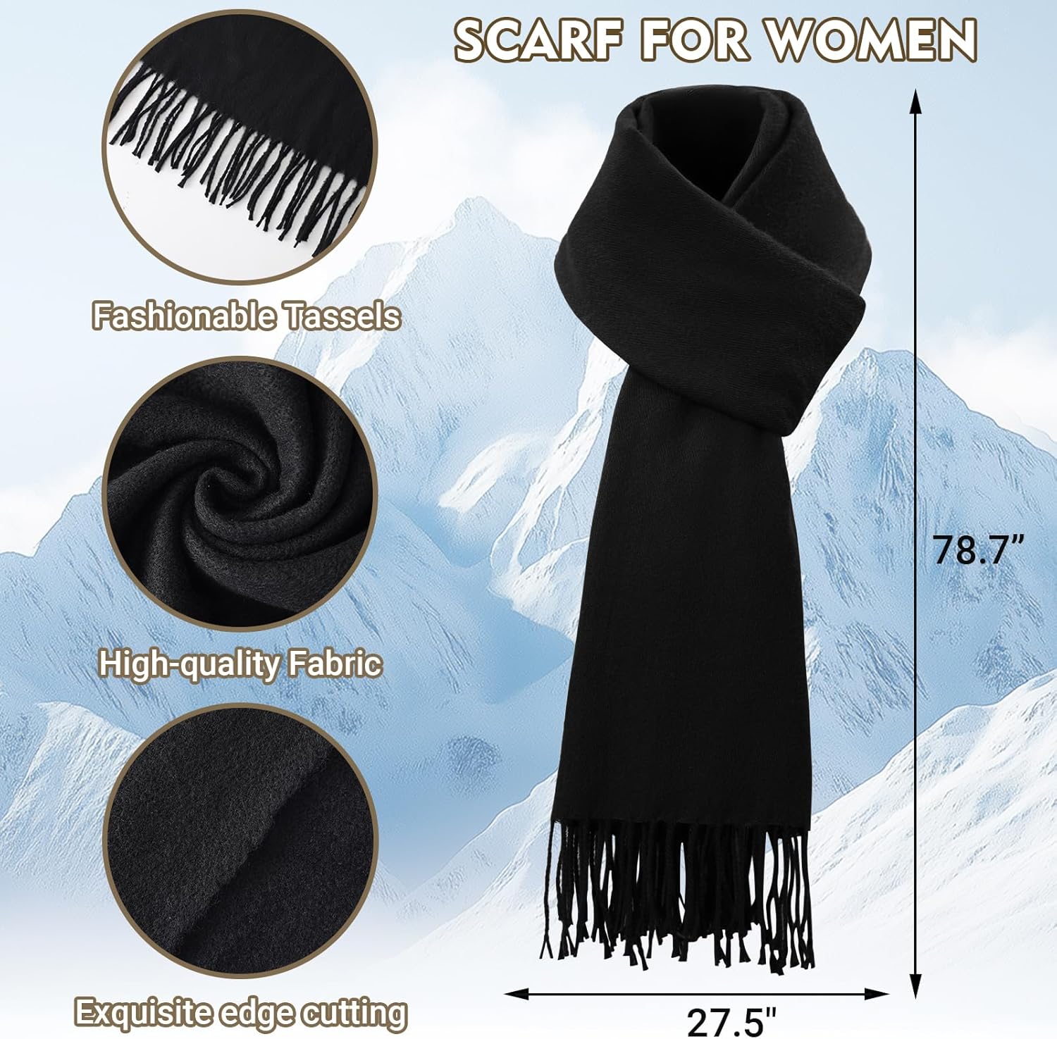 Our scarf is made of polyester. Measures with dimensions: 79″ L x 27″ W (including the tassel)The perfect length makes it possible to wear it in many ways and can easily match with your outfits