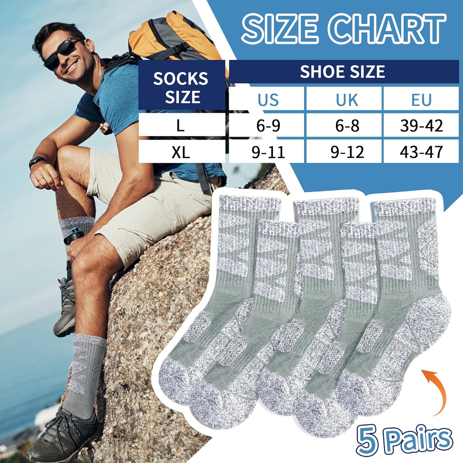 🥾 SkiBeaut Men Hiking Socks,5 Pairs Warm Winter Cozy Cushion Mountain Hiking Man Socks for Running, Outdoor — Review, Key Features & Current Price