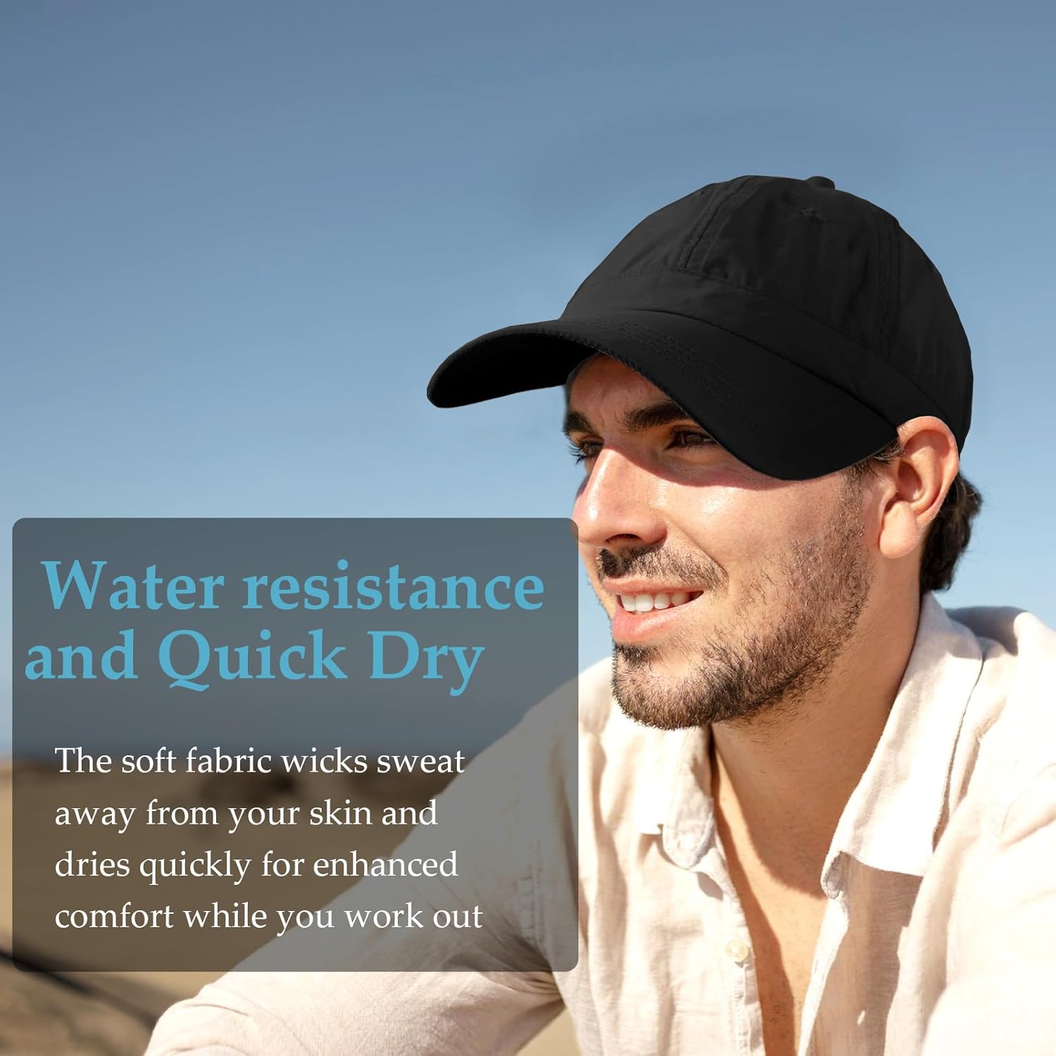 Quick dry baseball cap is made of high-quality nylon, which is quick-drying and water-resistant.